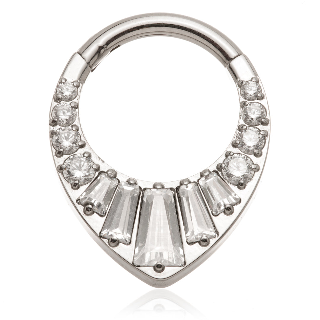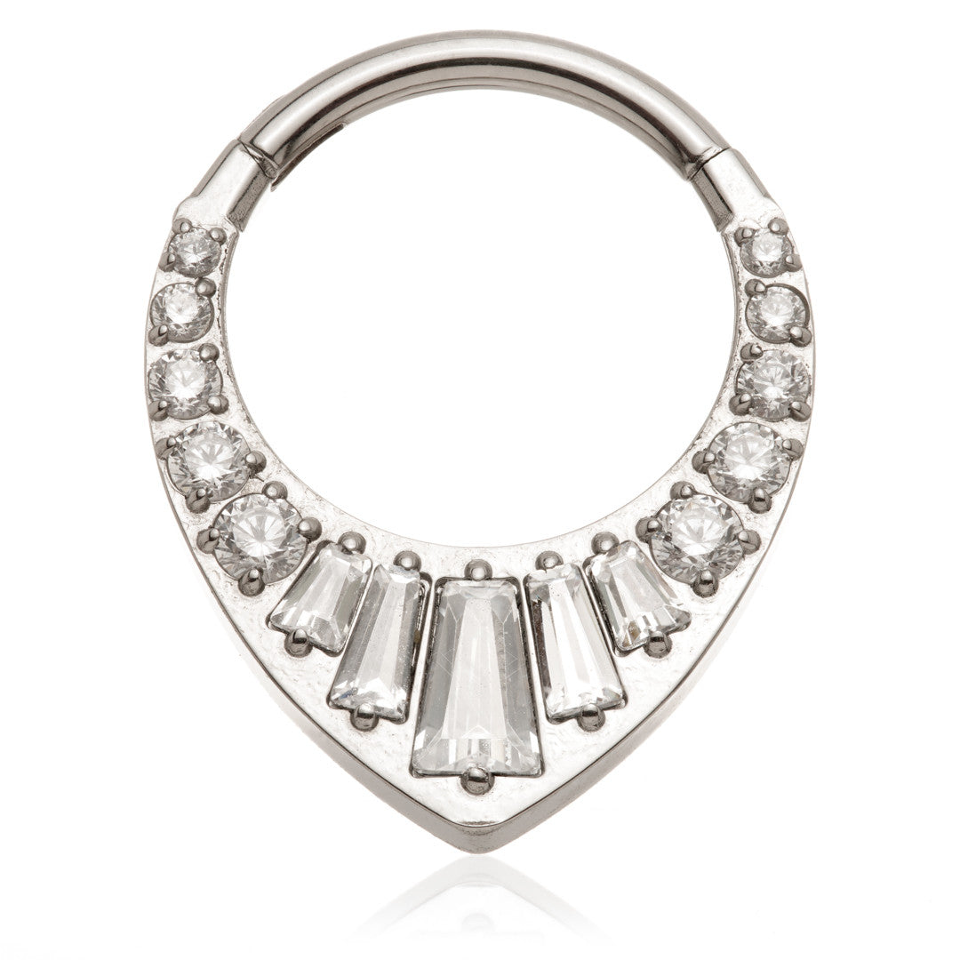 Titanium Couture Hinged Ring with Baguette and Round Gems Gauge: 1.2mm Size: 8mm/10mm Medical Grade Titanium 6Al-4VEli ASTM:F-136