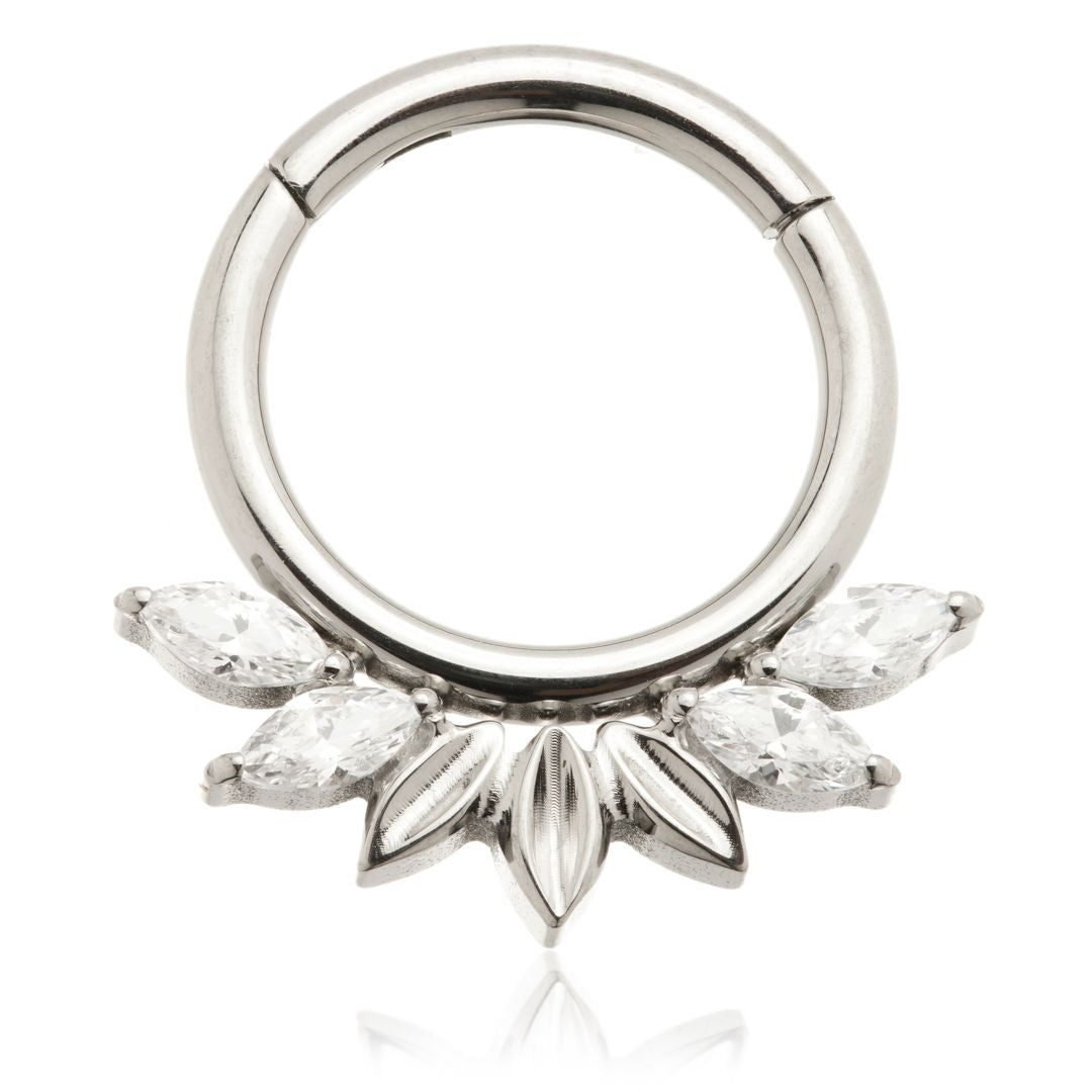 Ti Couture Marquise Fan Forward Facing Hinged Ring Gauge: 1.2mm Size: 8mm / 10mm Medical Grade Titanium 6Al-4VEli ASTM:F-136