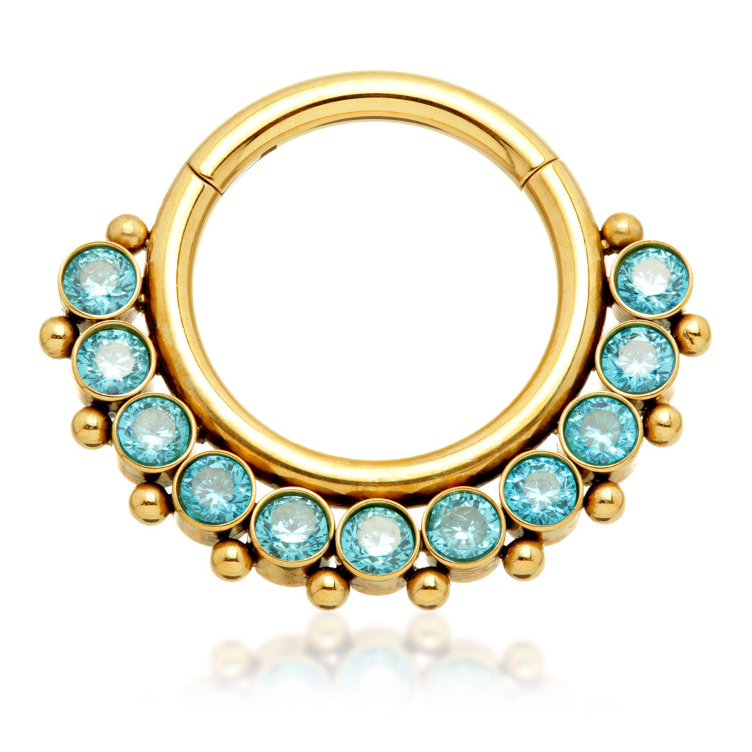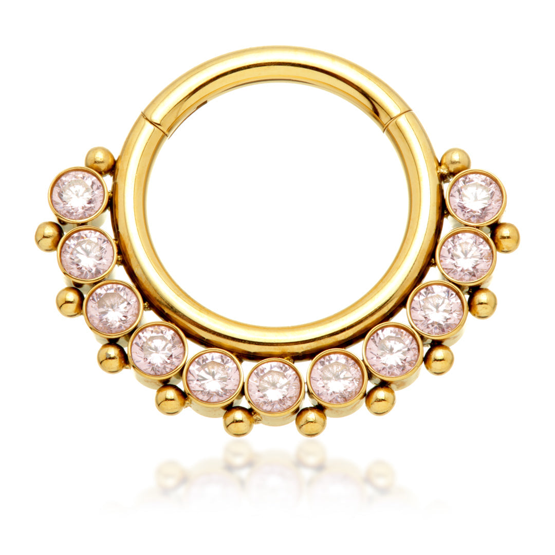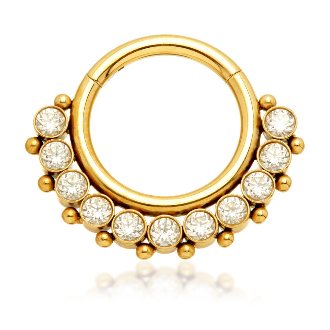Zircon Gold Ti Front Facing Jewelled Cluster Hinged Ring