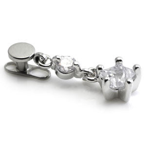 Titanium Dermal Base with Surgical Steel Flat Top Disk and Dangly Gem Star Ideal For Cleavage Piercing Gauge 1.6mm / Thread 1.2mm Up Stand: 2.5mm Gem Colour: Crystal