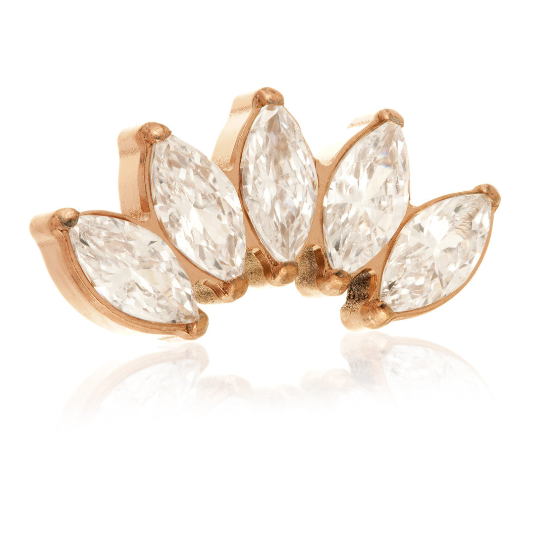 Rose Gold Ti Internal Prong Jewelled Marquise Cluster Attachment Gauge: 1.2mm (0.9mm Thread) Attachment Size: 12*6mm Gem Colour: Crystal CZ Gem Stones Medical Grade Titanium 6Al-4VEli ASTM:F-136