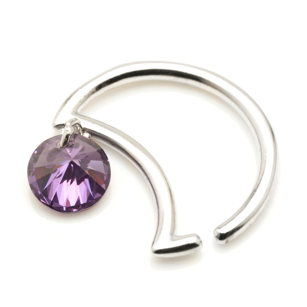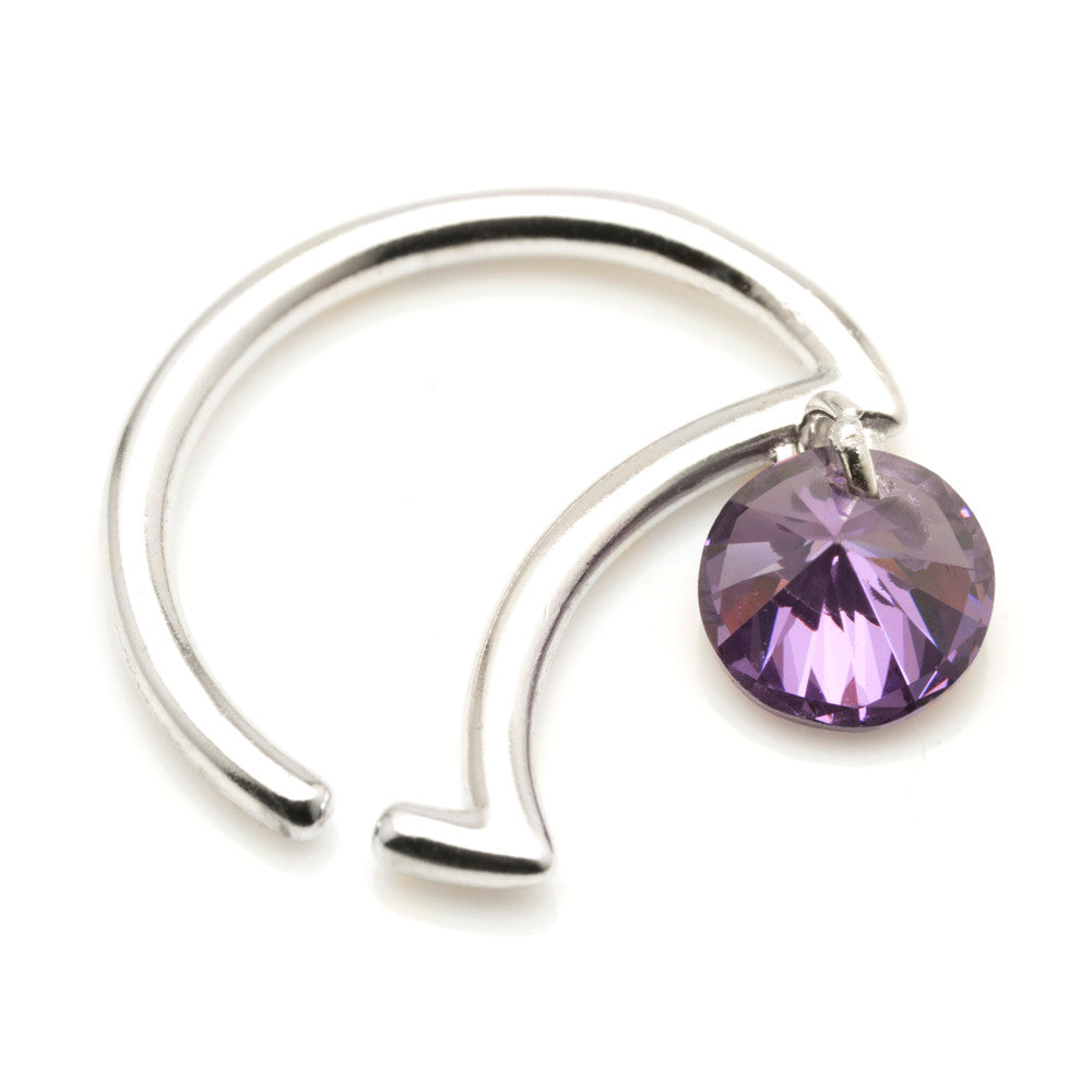 925 Silver set with large purple gem stone Gauge: 1.2mm Size: Height 12mm / Width 7mm Gem Colour: Lilac (Gem usually worn at top) Available for Left or Right side Right = wear on right / gems are on left side when flat Left = wear on left / gems are on the right side when flat Not for initial piercing, only to be worn in healed piercings