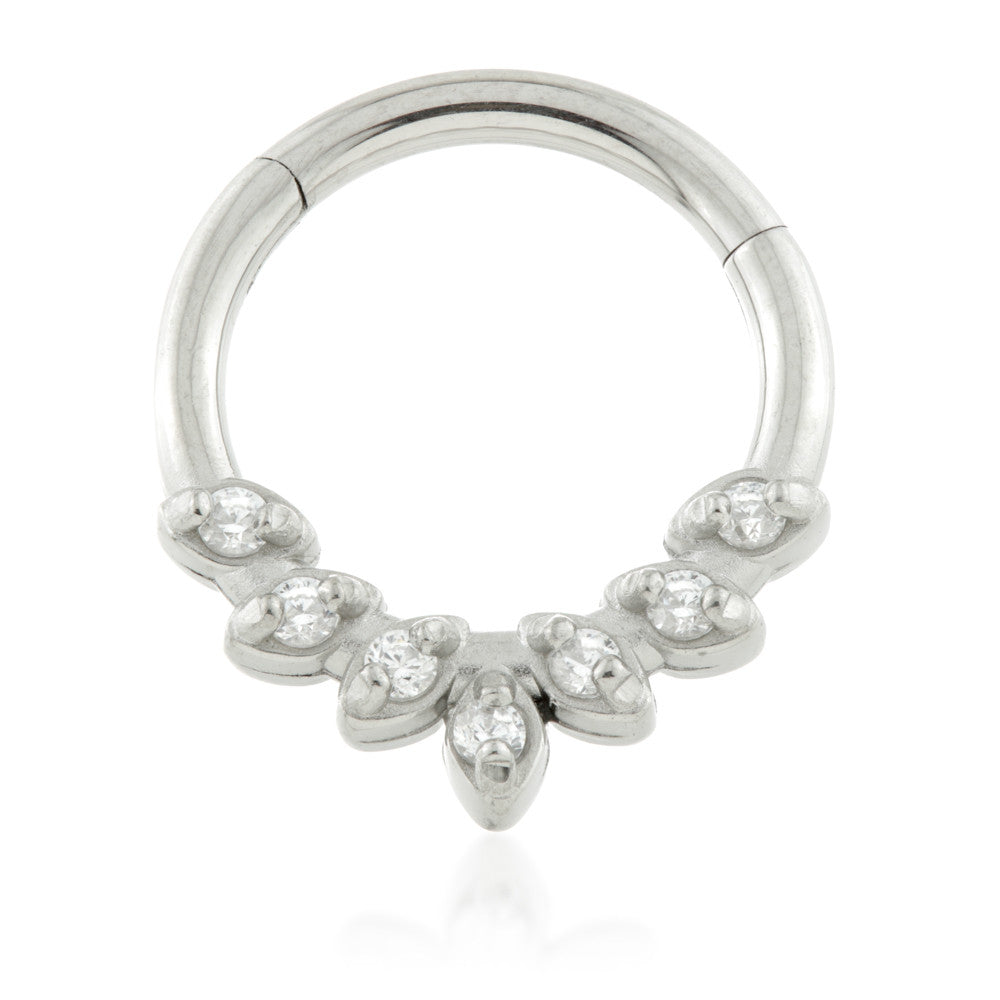 316L Surgical Steel Front Facing Jewelled Hinge Ring Gem Colour: Crystal Gauge: 1.2mm Size: 8/10mm