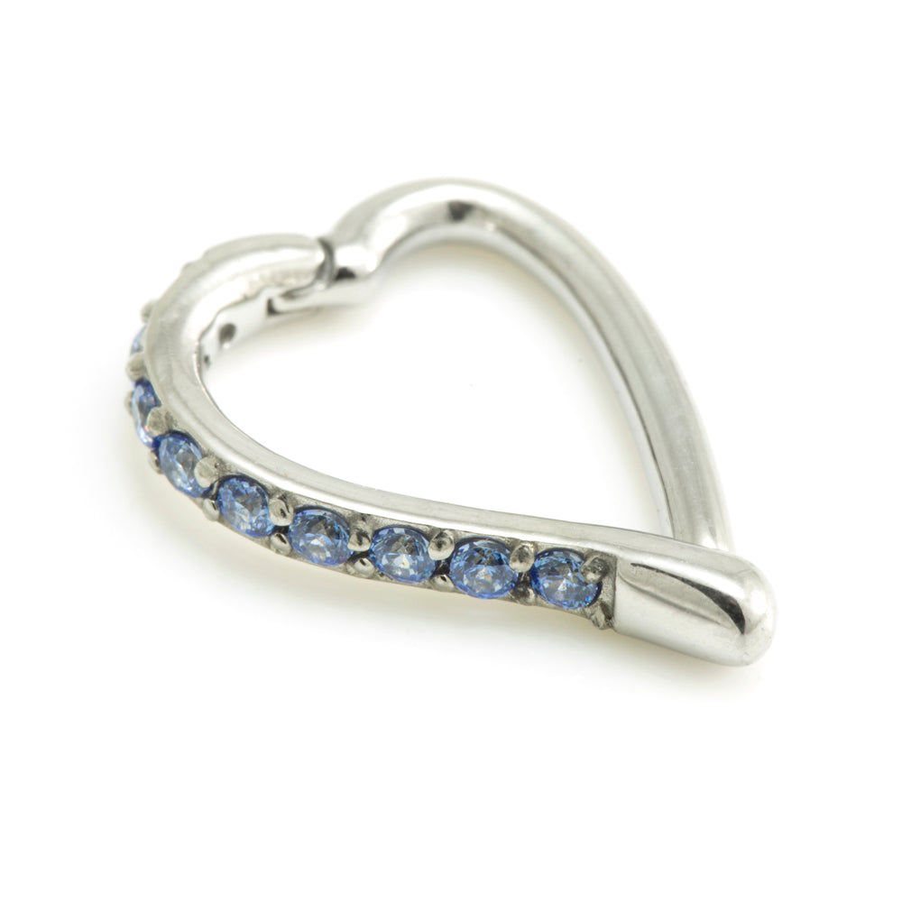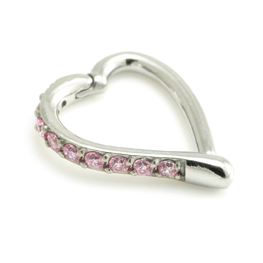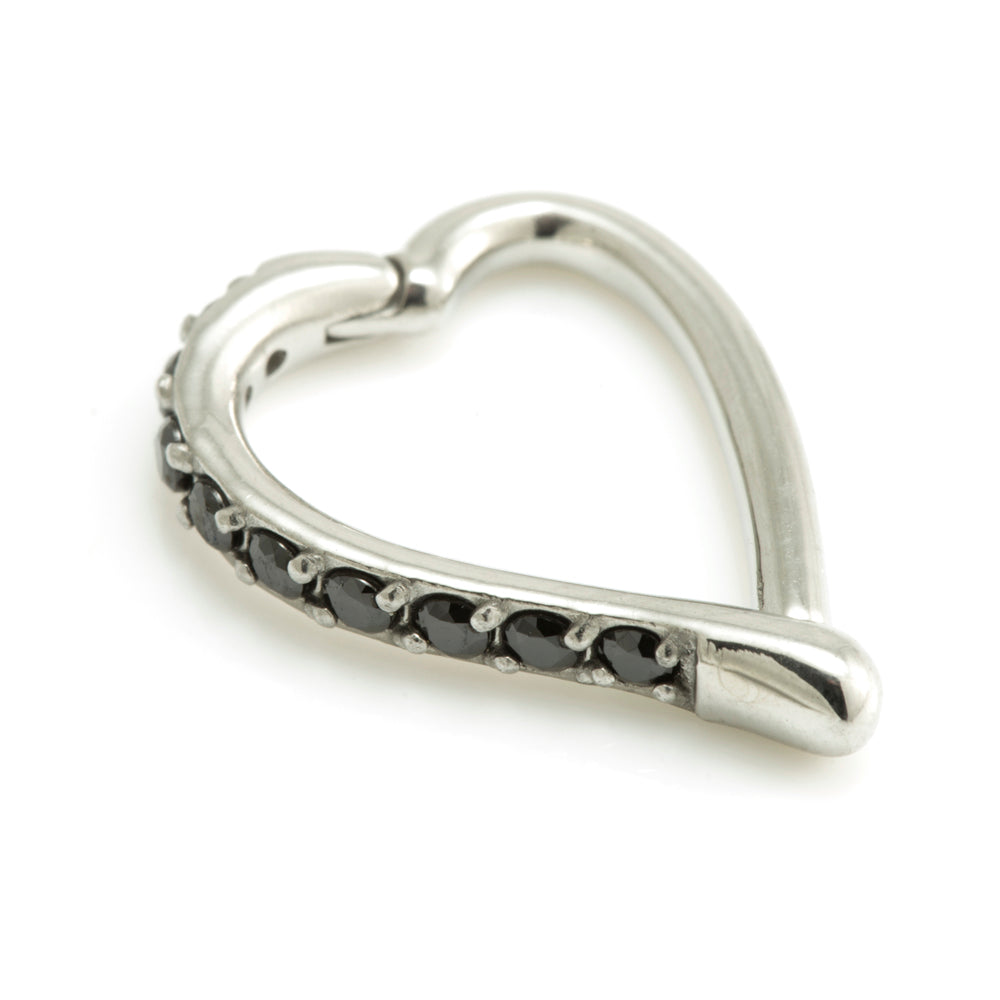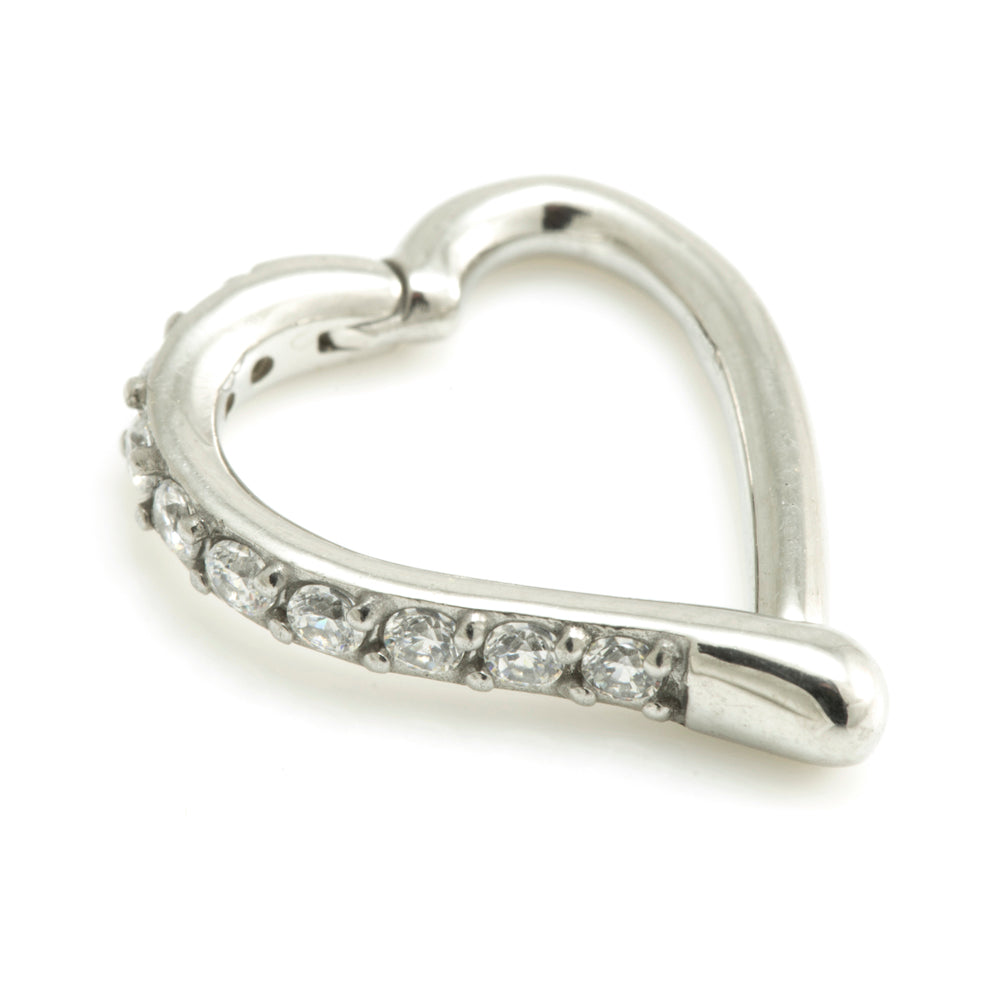 Hinge 316L Steel Heart Ring Gem Colours: Crystal, Lt Rose, BZ, Jet, Lt Siam, Sapphire Size: 1.6mm x 10mm, pave gems on the side Swarovski Crystal Gem Stones
