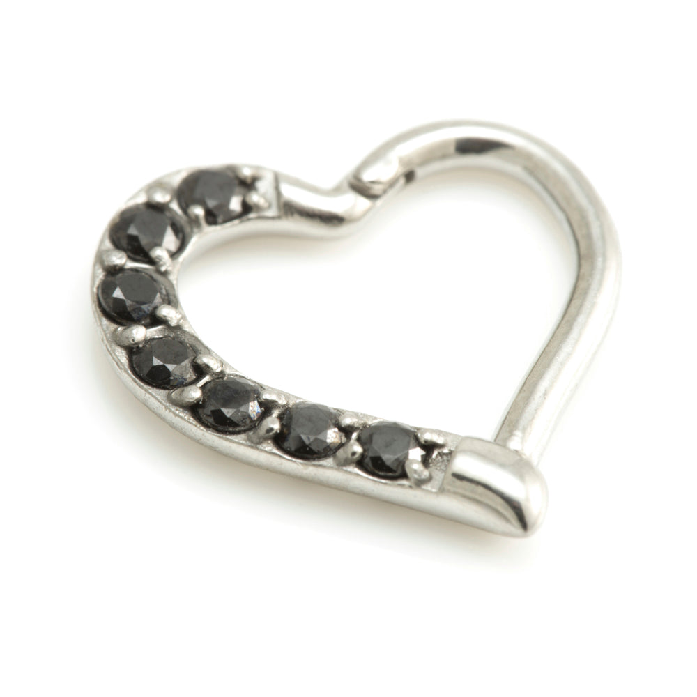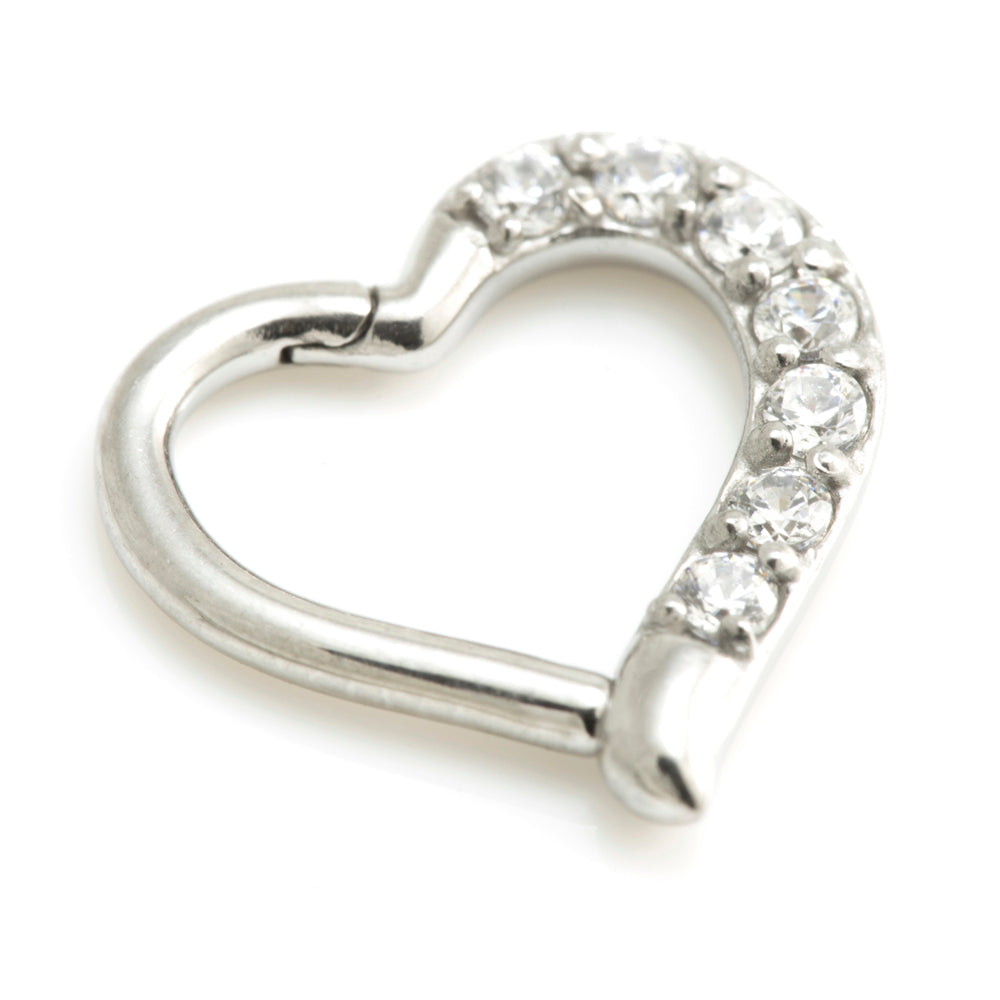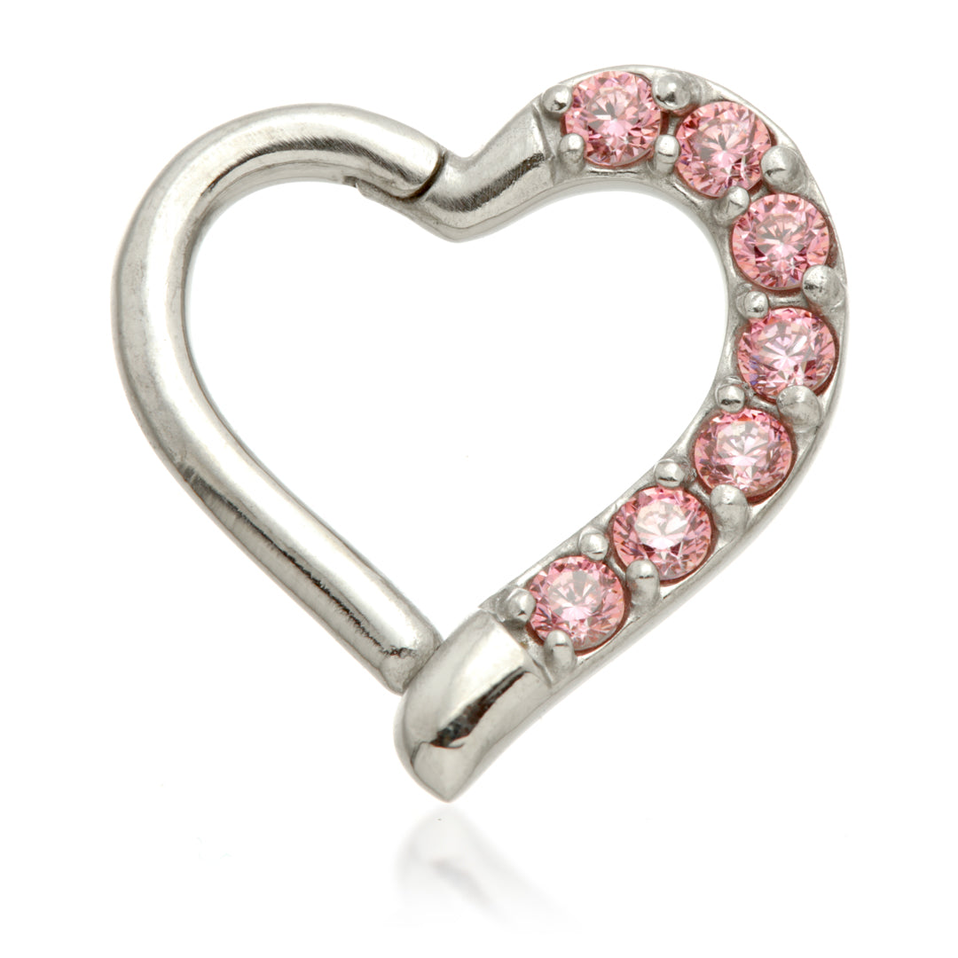 Hinge Pave Set Gem Heart Ring 316L Steel Gem Colours: Crystal, Lt Rose, Jet, Violet, Lt Siam, Peridot Size: 1.2mm x 7mm/8mm/10mm Swarovski Crystal Gem Stones Right or Left available Right = wear on right / gems are on left side when flat Left = wear on left / gems are on the right side when flat