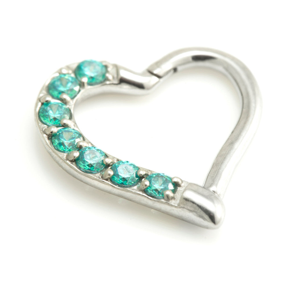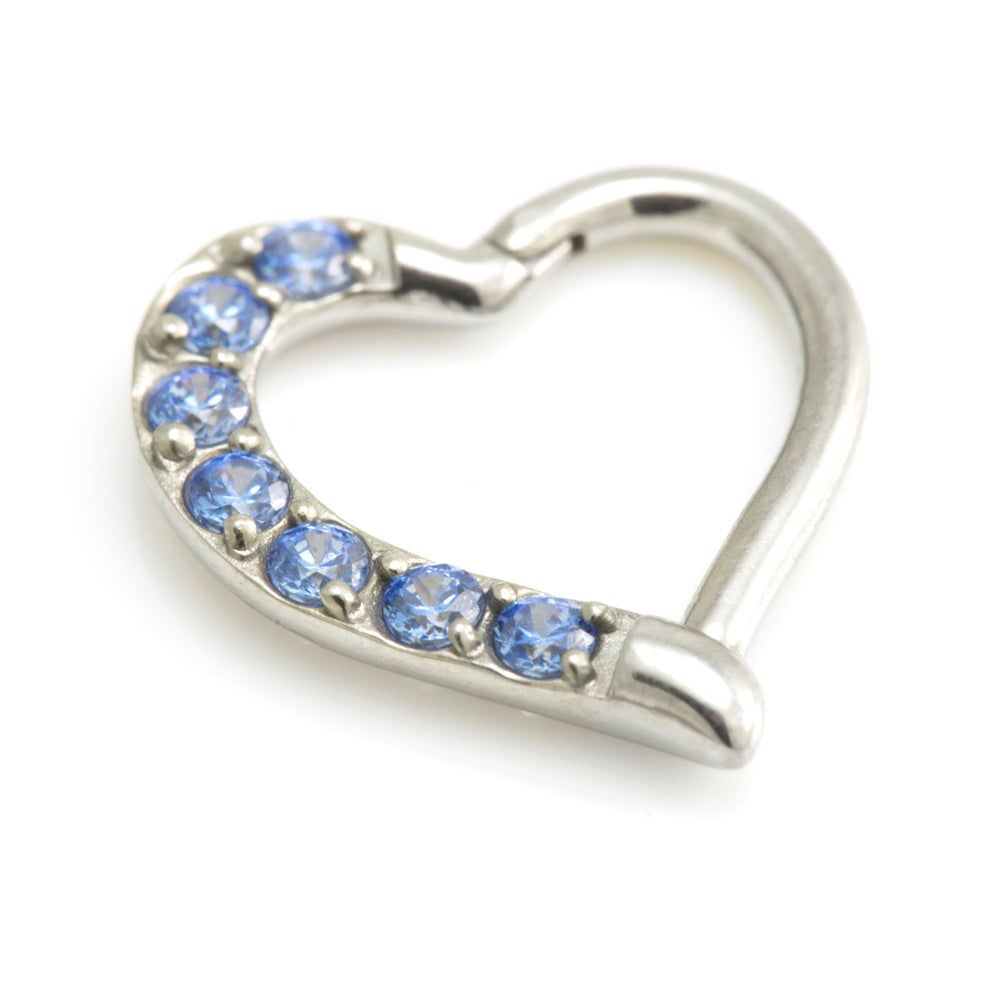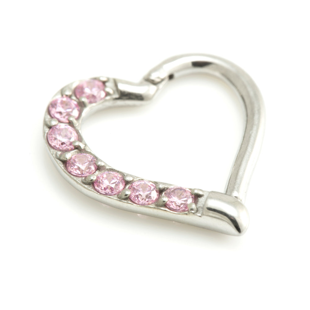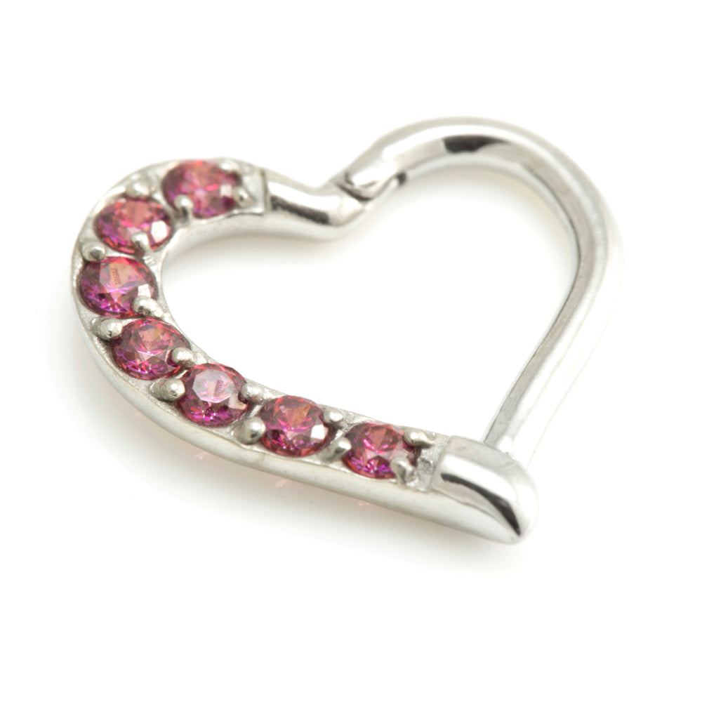Hinge Pave Set Gem Heart Ring 316L Steel Gem Colours: Crystal, Lt Rose, Jet, Violet, Lt Siam, Peridot Size: 1.2mm x 7mm/8mm/10mm Swarovski Crystal Gem Stones Right or Left available Right = wear on right / gems are on left side when flat Left = wear on left / gems are on the right side when flat