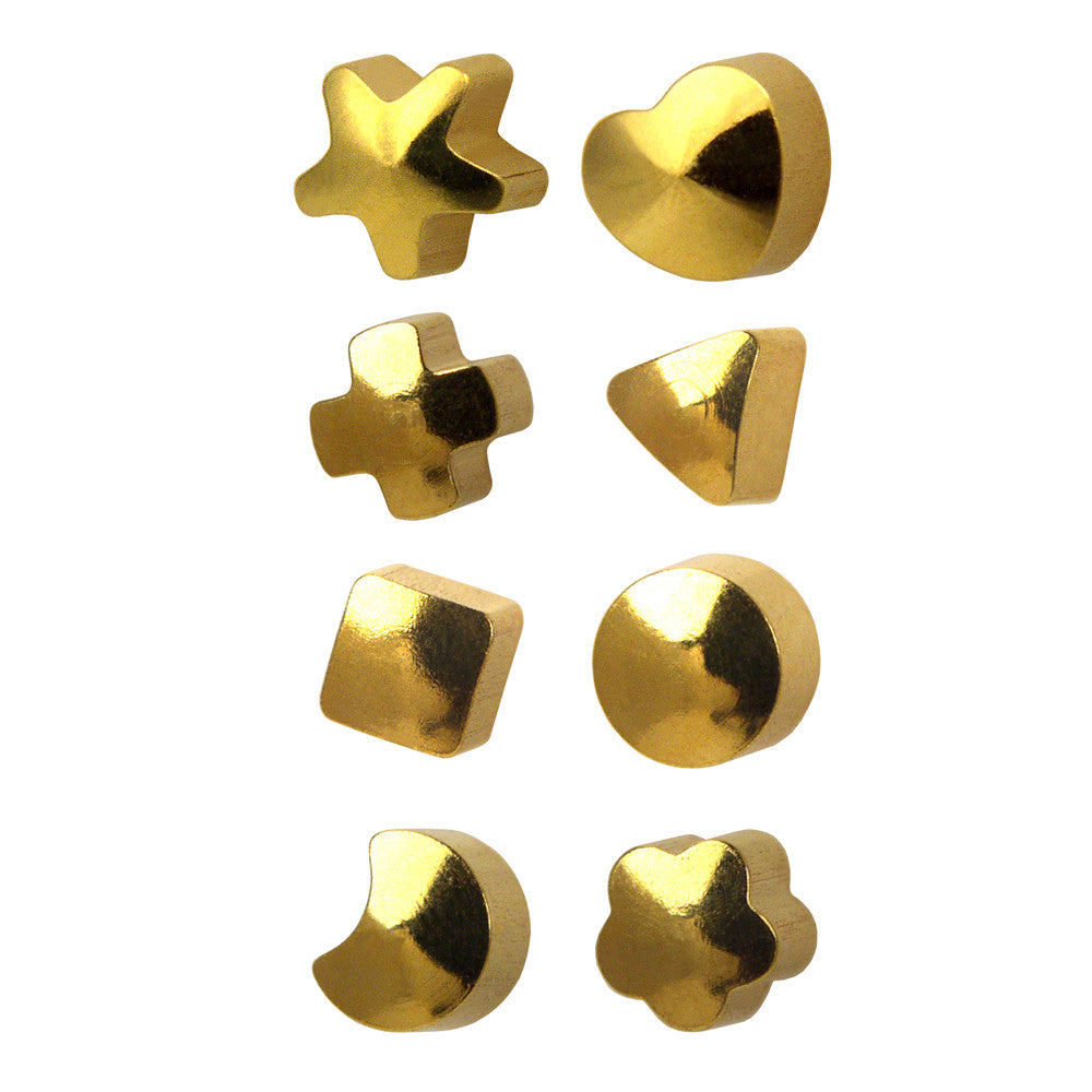 Regular Size Traditional Gold Piercing Studs - 12 per pack Star, moon, cross, flower, triangle, circle, square, heart Gold Plate All Sterile and EC compliant Studex Code: DCNR513Y