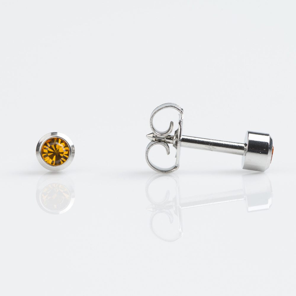 Regular Size Bezel Set Topaz Euro White Steel Piercing Studs - 12 per pack November Birthstones - 12 crystal Euro White Steel All Sterile and EC compliant Studex Code: DCNR211W