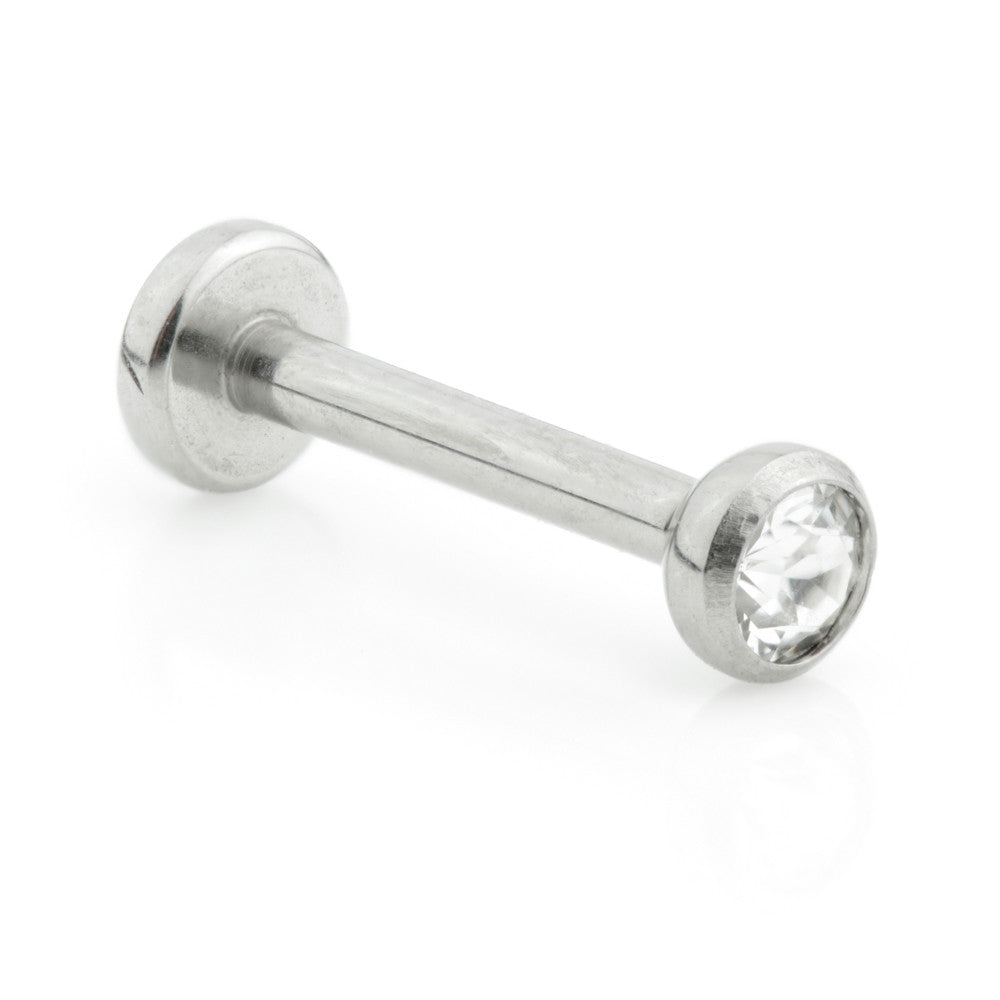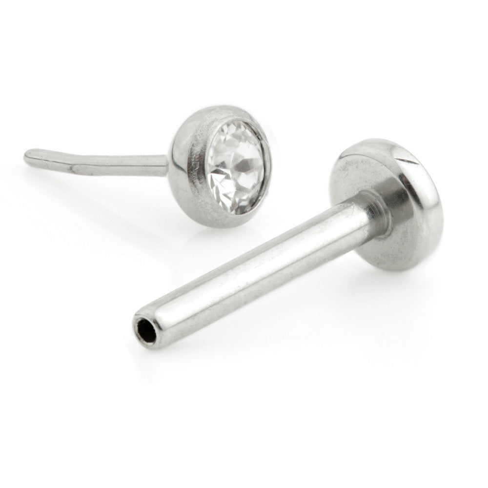 Threadless Titanium Labret with Pop in Gem Ball Gauge: 1mm (threadless pin on Ball) Labret Sizes: 6/7/8/mmGem Colour: CrystalBall Sizes: 2mm or 2.5mmBase Plate Size: 3mm Medical Grade Titanium 6Al-4VEli ASTM:F-136Swarovski Crystal Gem Stones