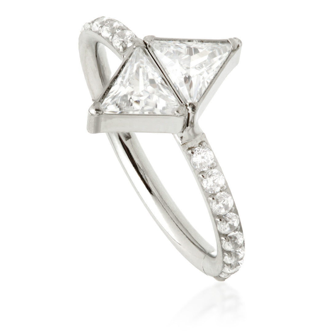 Ti Couture Pave Double Trillian Cut Hinged Ring Gauge: 1.2mm Sizes: 8/10mm CZ Gem Stones Medical Grade Titanium 6Al-4VEli ASTM:F-136