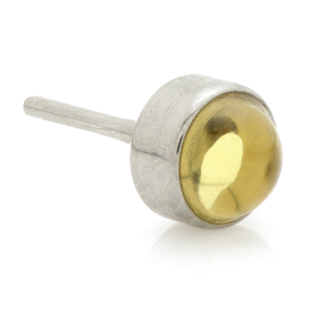 Titanium Threadless Citrine Bezel Attachment Gauge: 1.0/1.2/1.6mm (0.5mm threadless) Attachment Size: 3/4mm Stone: Citrine Medical Grade Titanium 6Al-4VEli ASTM:F-136