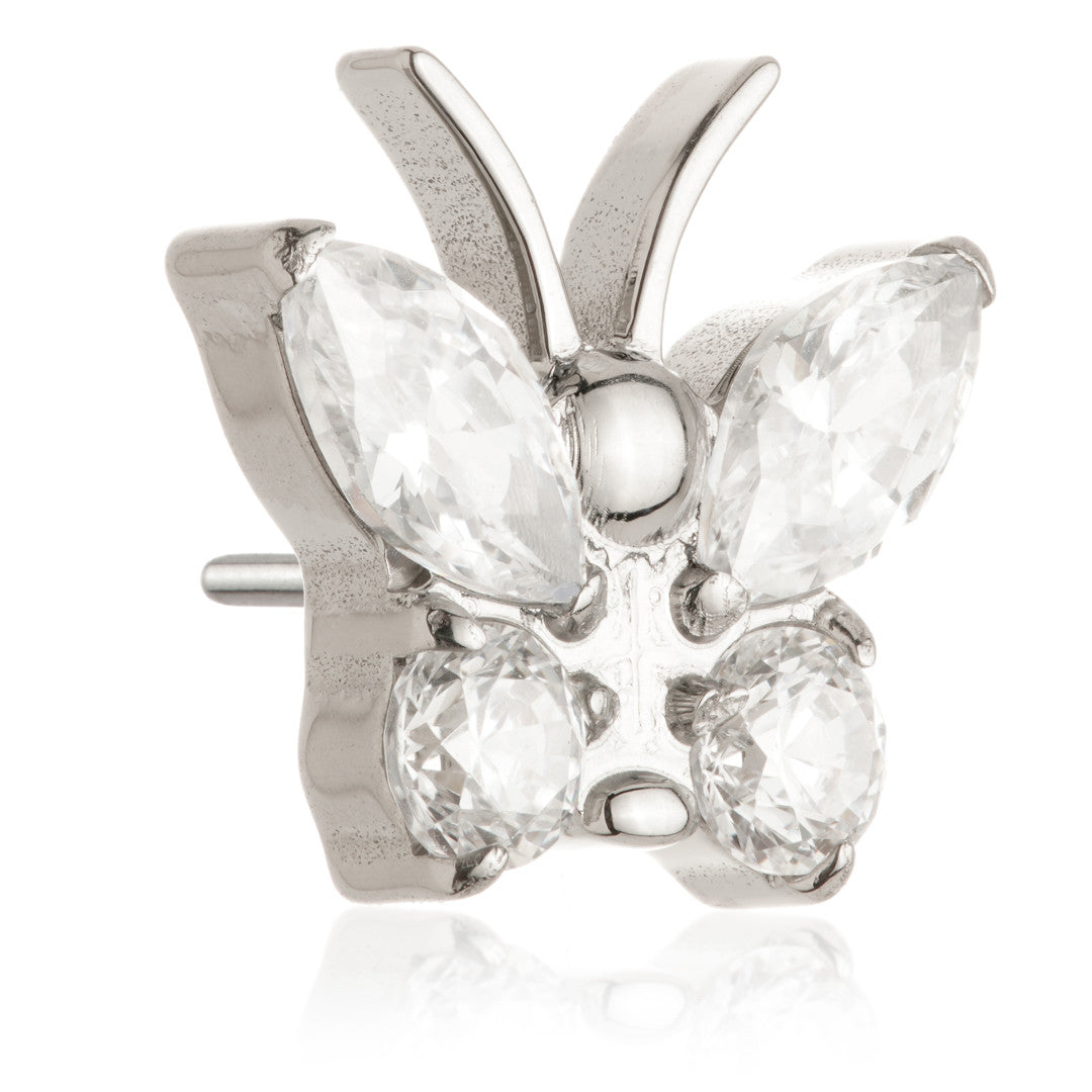 Titanium Threadless Gem Butterfly Attachment Attachment Size: 8mm Gem Colour: CR/CB CZ Gem Stones Medical Grade Titanium 6Al-4VEli ASTM:F-136
