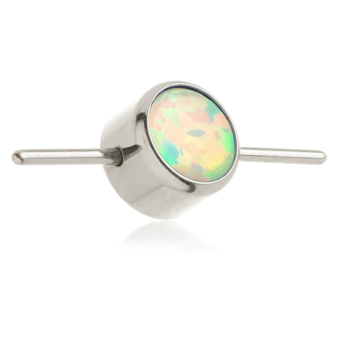 Titanium Threadless Opal Double Pin Connector Attachment Gem Size: 4mm Gem Colour: BL / WT Medical Grade Titanium 6Al-4VEli ASTM:F-136