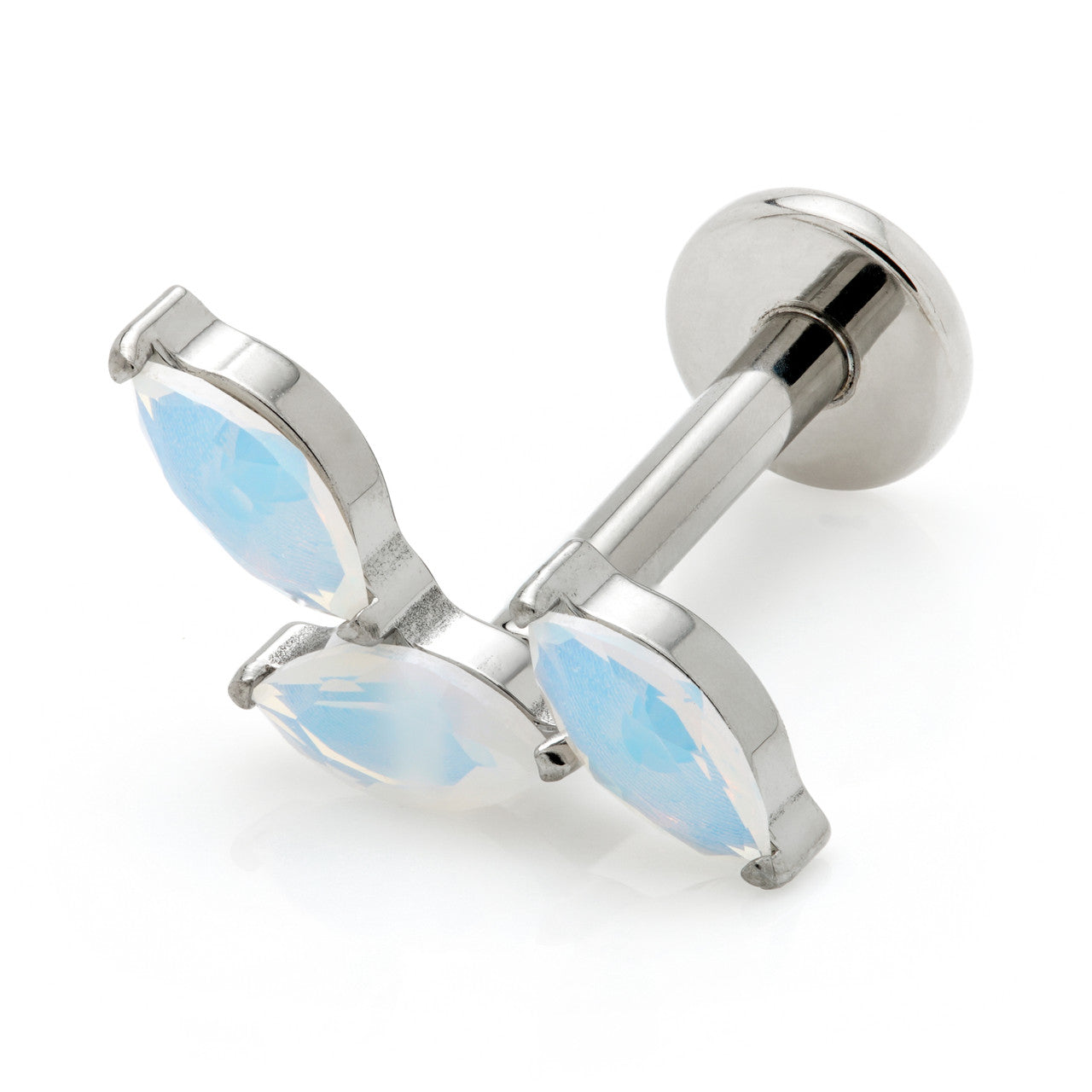 Ti Threadless Triple Opal Marquise Labret Gauge: 1.2mmAttachment Size: 10*4mmOpal Colour: White Medical Grade Titanium 6Al-4VEli ASTM:F-136