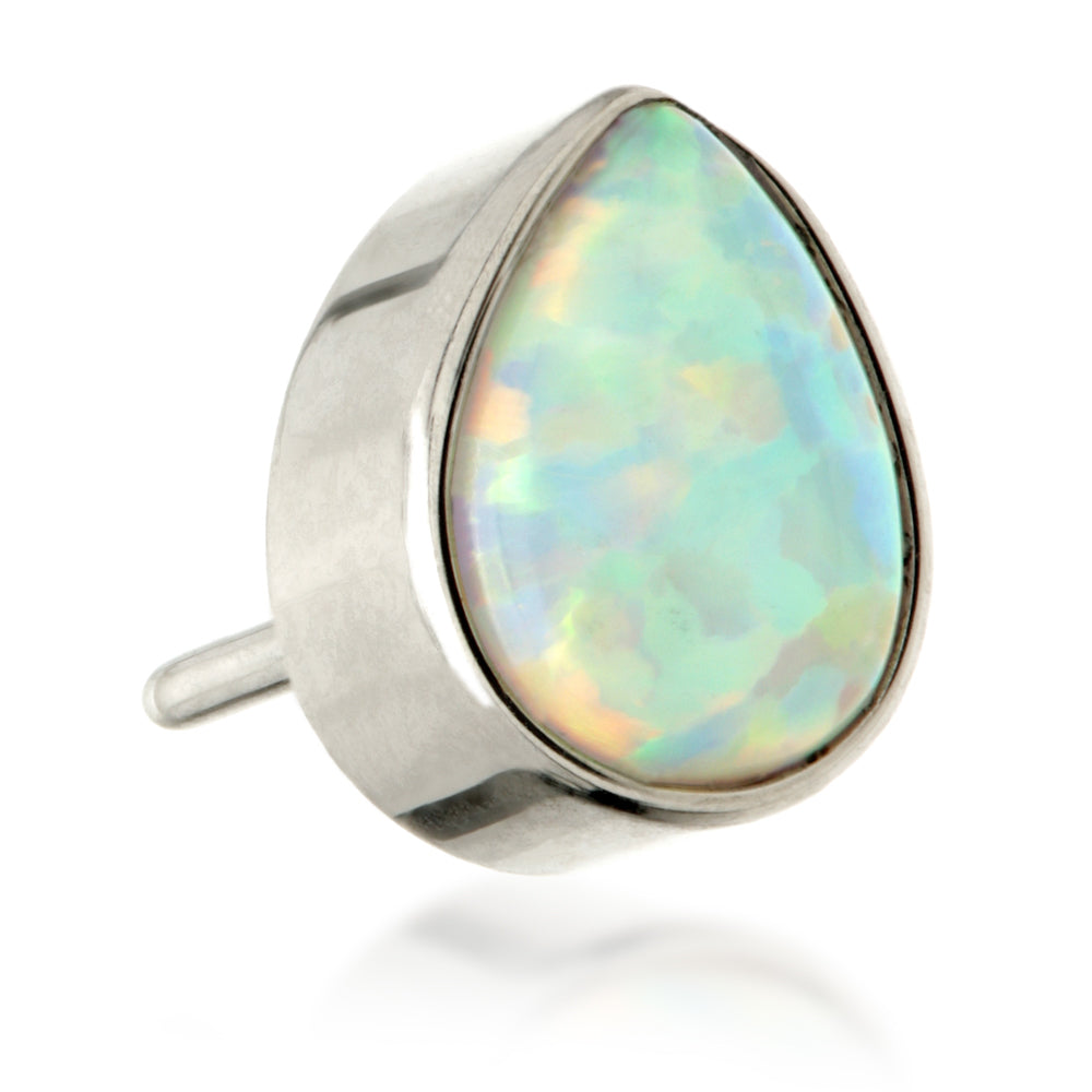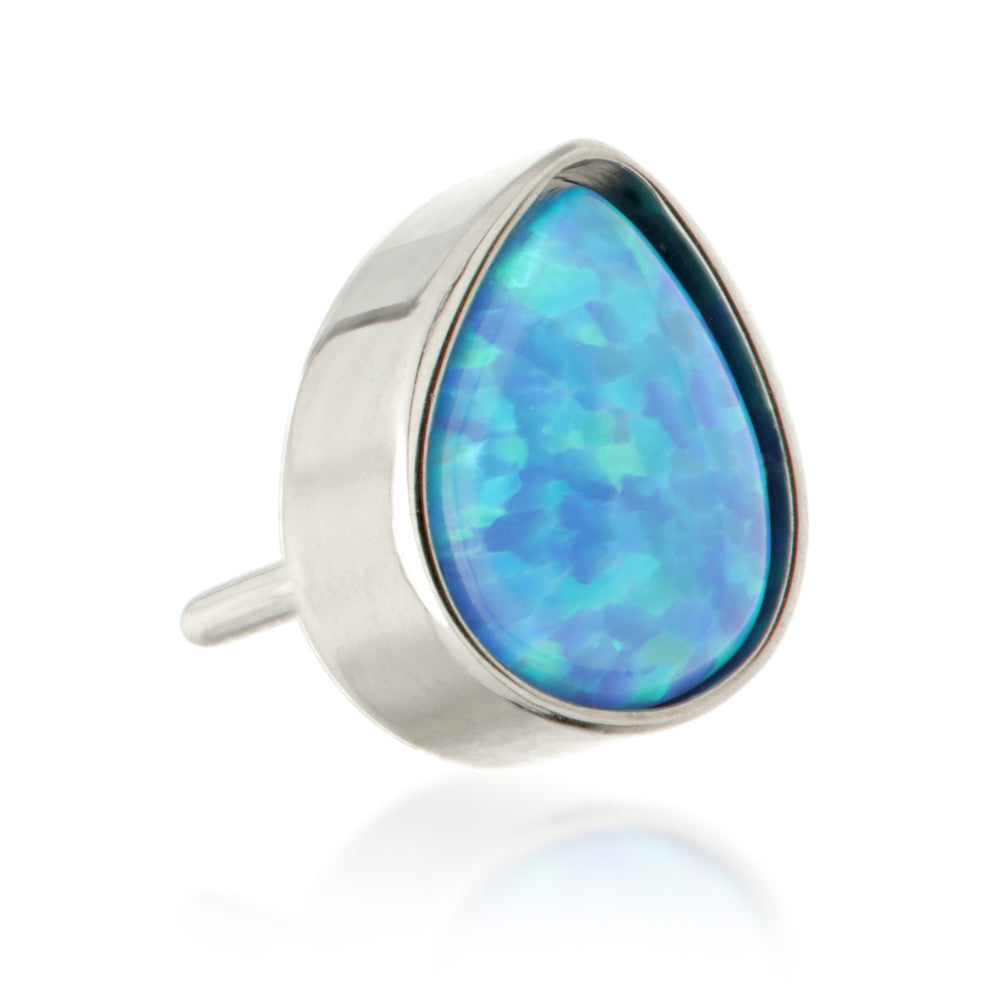 Titanium Threadless Opal Teardrop Attachment Gauge: 1.2mm Sizes: 4.5mm Opal Colours: Blue, Pink, White Medical Grade Titanium 6Al-4VEli ASTM:F-136