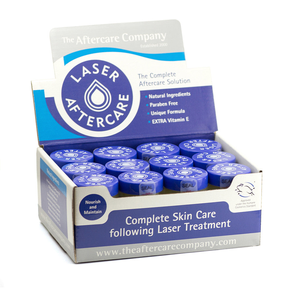 Laser Care from the Hemp Company - 24 small pots of aftercare ointments plus display box. 24 x 10ml Jars Laser Aftercare contains nourishing and protecting plant ingredients that moisturise the skin.Use between laser treatments to maintain the skin keeping it supple and soft. It is enriched with vitamins and natural calendula extract which supports healthy skin. The emollients it contains hydrate and moisturise whilst the linoleic and essential fatty acids replenish and protect the skin. Laser Aftercare is paraben-free with no chemical or artificial ingredients to disrupt the natural balance of your body. There has been no animal testing of any of the ingredients and is approved by Cruelty Free International (not tested on animals). Moisturise and maintain Nourishing plant extracts Suitable for all skin types Complimentary uses No Parabens Extra Vitamin E