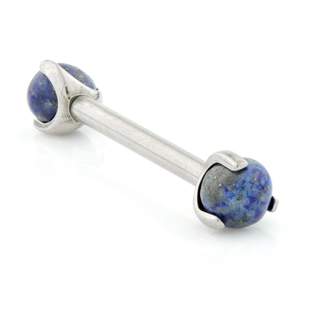 Internal Titanium Nipple Bar with Lapis Stone Please note, one end is fixed on to the bar and the other is removable. Gauge: 1.6mm Sizes: 12/14/16mm Medical Grade Titanium 6Al-4VEli ASTM:F-136