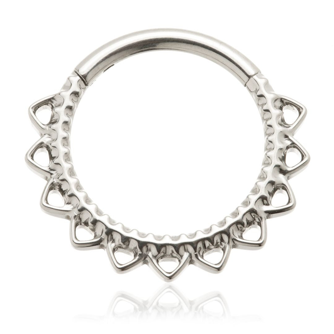 Ti Couture Beaded Open Petal Hinged Ring Gauge: 1.2mm Size: 8mm / 10mm Medical Grade Titanium 6Al-4VEli ASTM:F-136