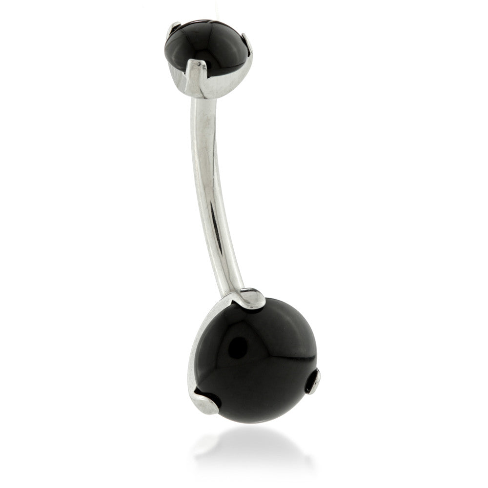 Ti External Prong Navel Bar with Double Black Agate Stone