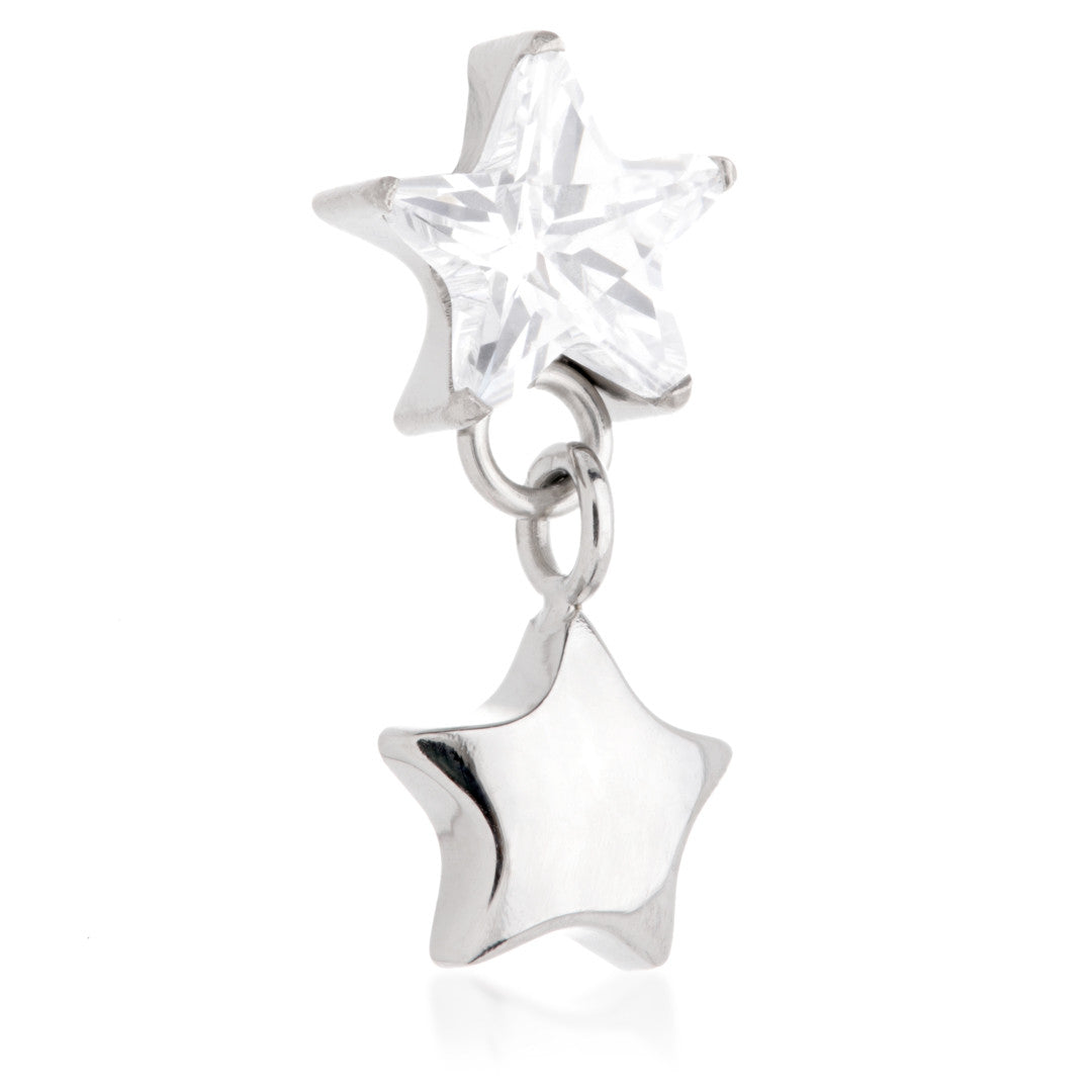 Ti Internal Double Star Attachment Gauge: 1.2mm (0.9mm thread) Gem Star Size: 4.5mm Plain Star Size: 4mm Gem Colour: Crystal Medical Grade Titanium 6Al-4VEli ASTM:F-136