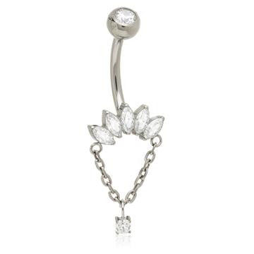 Ti Internal Marquise Crescent With Chain Navel Bar