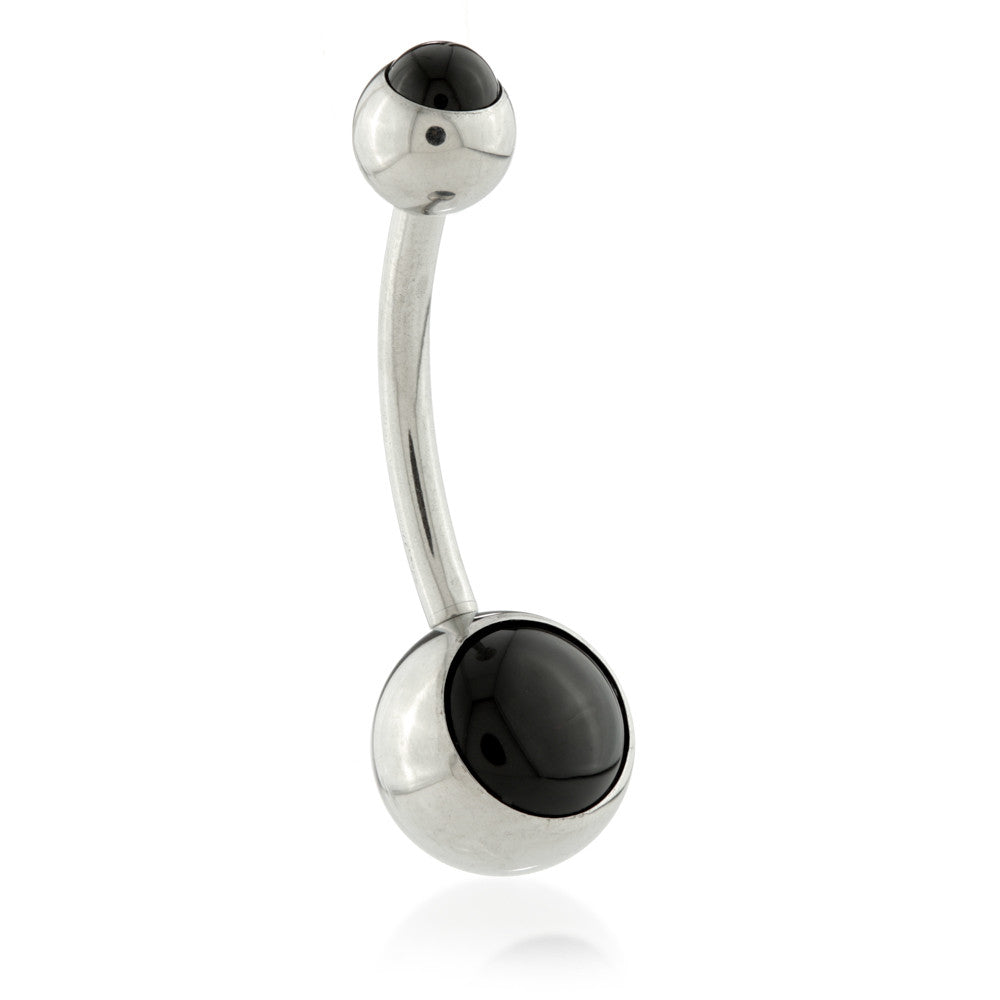 Ti Internal Navel Bar with Double Natural Black Agate Gauge: 1.6mm Sizes: 10mm / 12mm Ball Sizes: 5mm + 8mm ASTMF F136