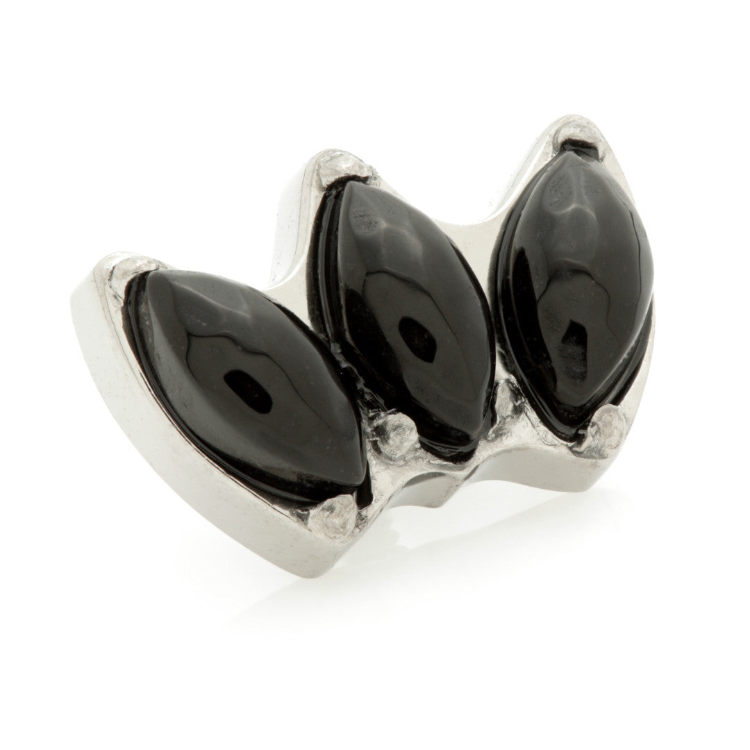 Titanium Internal Triple Marquise Attachment with Black Onyx Stone Gauge: 1.2mm (0.9mm thread) Size: 5mm x 8mm Stone Size: 1.5mm x 3mm Medical Grade Titanium 6Al-4VEli ASTM:F-136