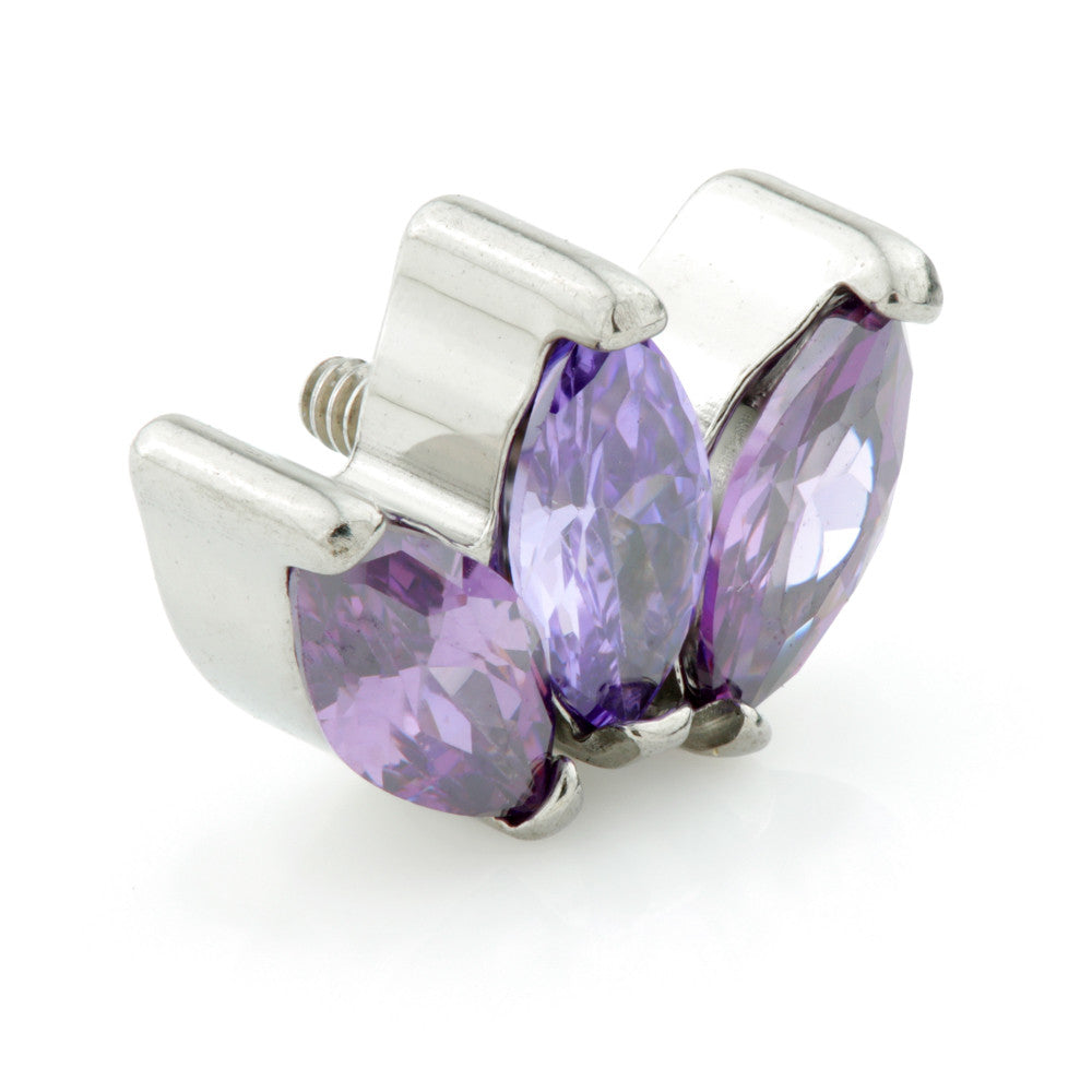 Internal Ti Triple Marquise Gem Attachment Gauge: 1.2mm (0.9mm thread) Gem Colours: CH/CR/JT/LI/VI Medical Grade Titanium 6Al-4VEli ASTM:F-136