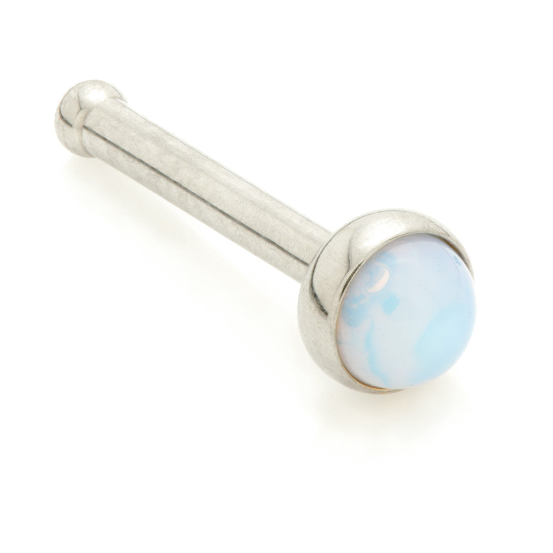 Ti Straight Ball Back Nose Stud with Opalite Stone Disk: 3mm Gauge: 1mm Medical Grade Titanium 6Al-4VEli ASTM:F-136