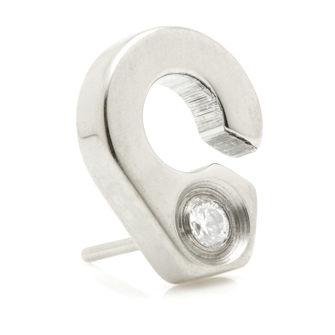 Titanium Threadless Handcuff Attachment Gauge: 1.2mm Size: 6mm x 7.5mm Gem Size: 1.5mm Gem Colour: CR CZ Gem Stones Medical Grade Titanium 6Al-4VEli ASTM:F-136