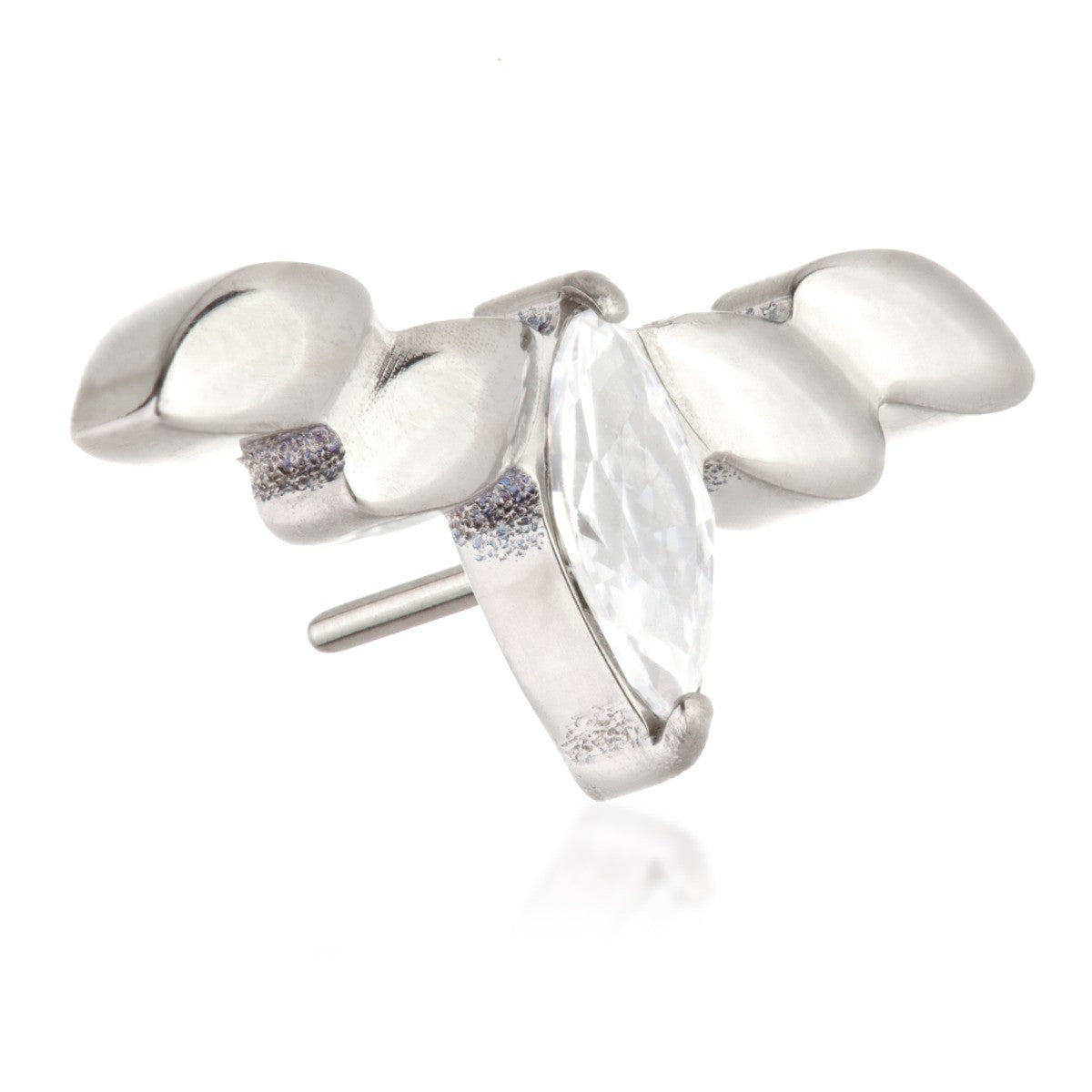 Titanium Threadless Jewelled Marquise Cluster Attachment Gauge: 1.0/1.2/1.6mm (0.5mm threadless) Attachment Size: 5mm x 12mm Gem Colour: CR CZ Gem Stones Medical Grade Titanium 6Al-4VEli ASTM:F-136