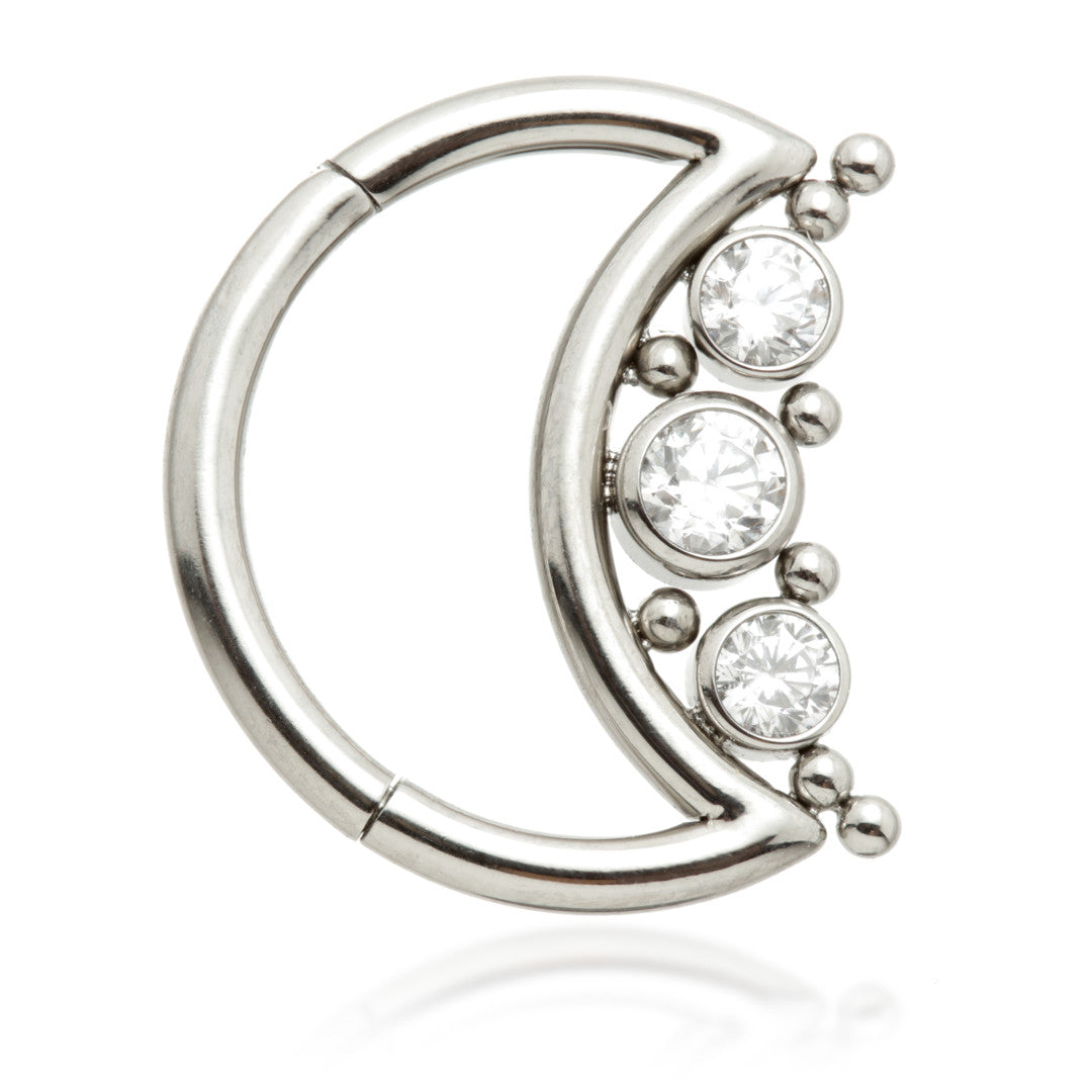 Ti Triple Jewelled with Beads Moon Shaped Hinge Ring