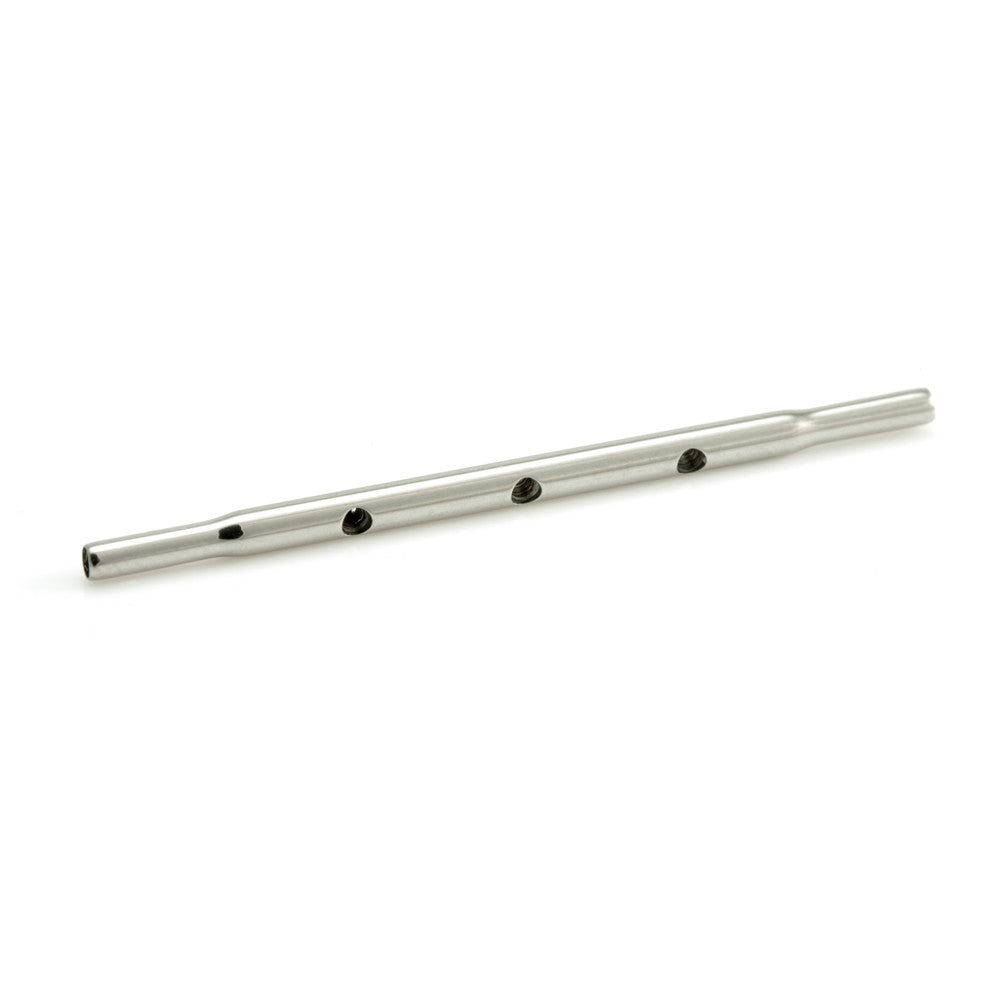 Internal Thread Industrial Barbell - Holds QDD attachments, 1 hole or 3 holes in the centre Bar Gauge: 1.6mm increasing to 2mm in the centre and holding 1.6mm attachments (with 1.2mm threads) Bar Length: 34mm, 36mm or 38mm with one hole (holds 1 attachment) Bar Length: 36mm or 38mm with three holes (holds 3 attachment) Number of attachments held: 1 (central) or 3 Medical Grade Titanium 6Al-4VEli ASTM:F-136