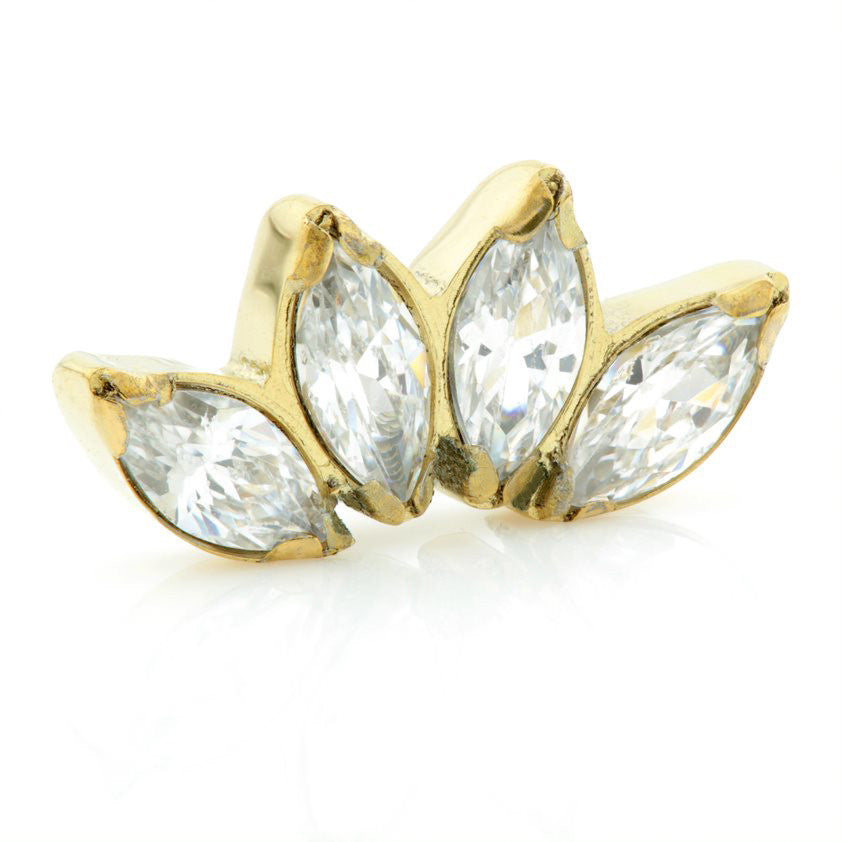 Internal Zircon Gold Marquise Gem Cluster Size: 11mm Gem Size: 4mm x 2mm (x4) Crystal Gems Medical Grade Titanium 6Al-4VEli ASTM:F-136
