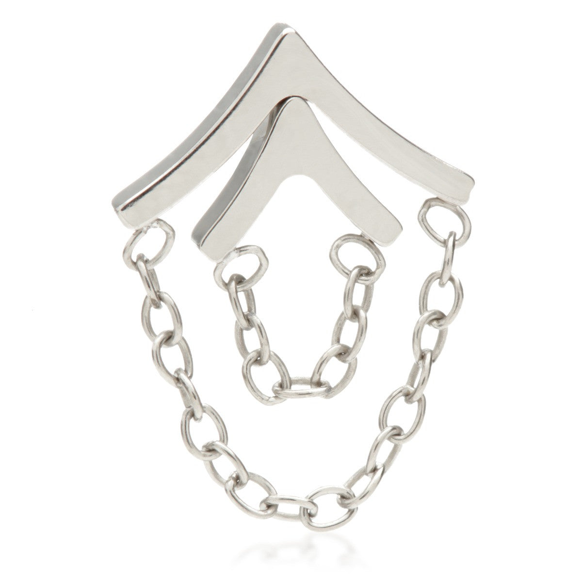 Titanium Internal Attachment with Double Hanging Chains Gauge: 1.2mm (0.9mm thread) Attachment Size: 6mm x 10mm Chain Lengths: 10+22mm Medical Grade Titanium 6Al-4VEli ASTM:F-136