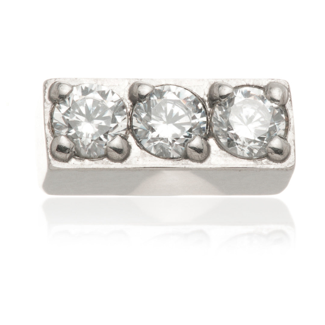 Ti Internal Multi 3 Gem Bar Attachment - 1.6mm 1.2mm Thread fits QMTB range Gauge: 1.6mm Size: 7mm Gem Colour: CR Medical Grade Titanium 6Al-4VEli ASTM:F-136