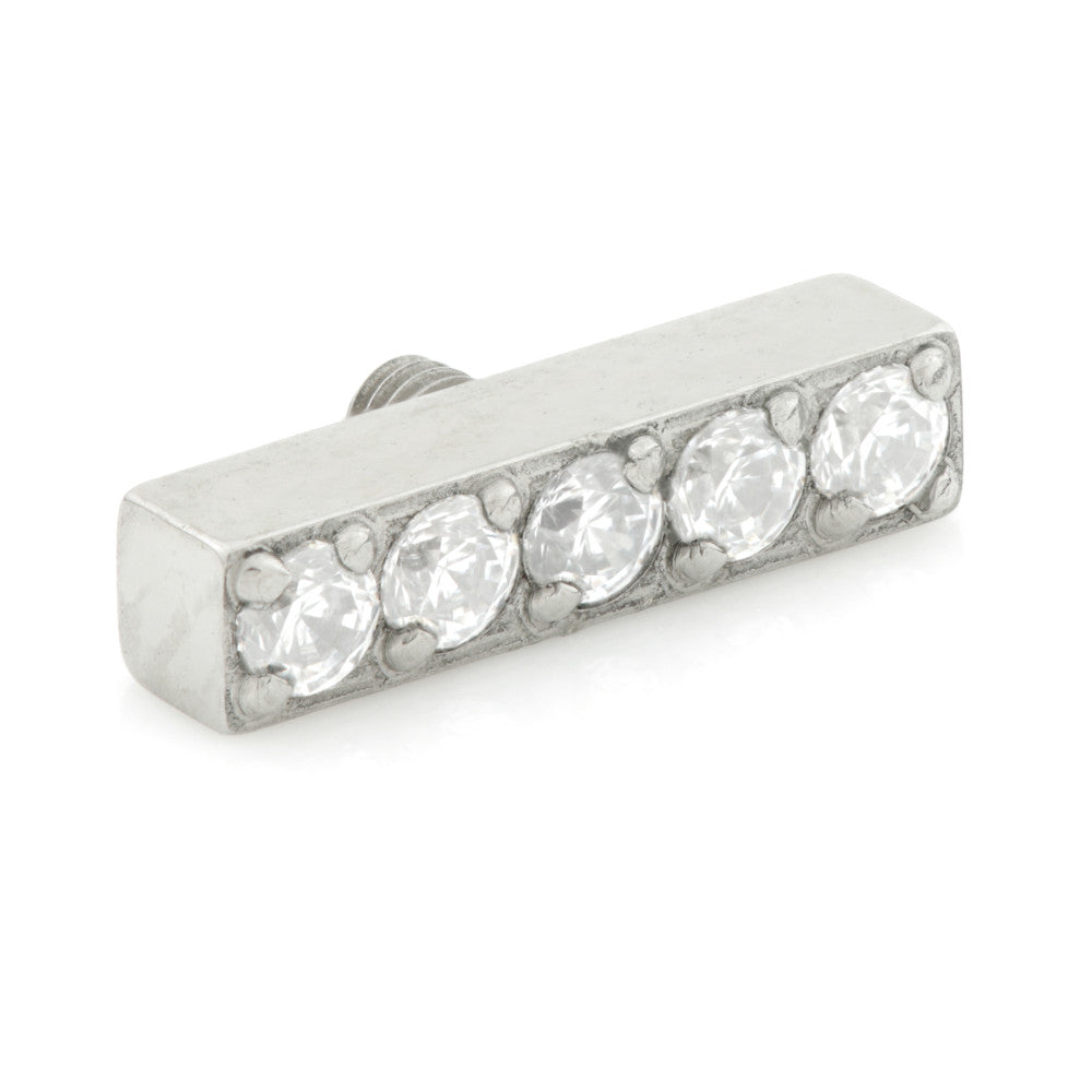 Ti Internal Multi 5 Gem Bar Attachment - 1.6mm 1.2mm Thread fits QMTB range Gauge: 1.6mm Size: 7mm Gem Colour: CR Medical Grade Titanium 6Al-4VEli ASTM:F-136