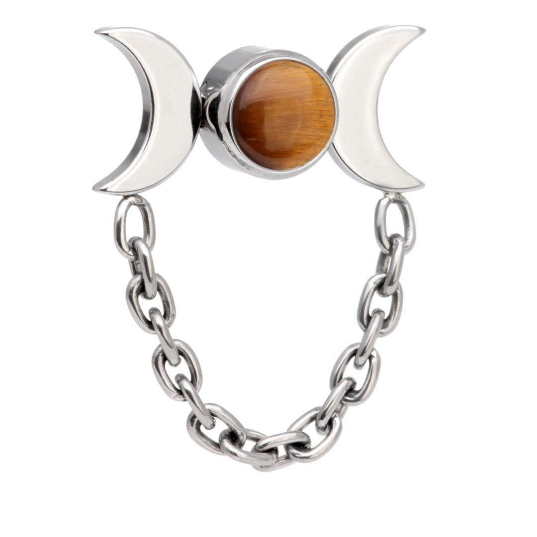 Ti Internal Tiger Eye Bezel with Double Moon Crescent Attachment Gauge: 1.2mm (0.9mm Gauge) Attachment Size: 3mm x 9.7mm Stone Colour: Tiger Eye Medical Grade Titanium 6Al-4VEli ASTM:F-136
