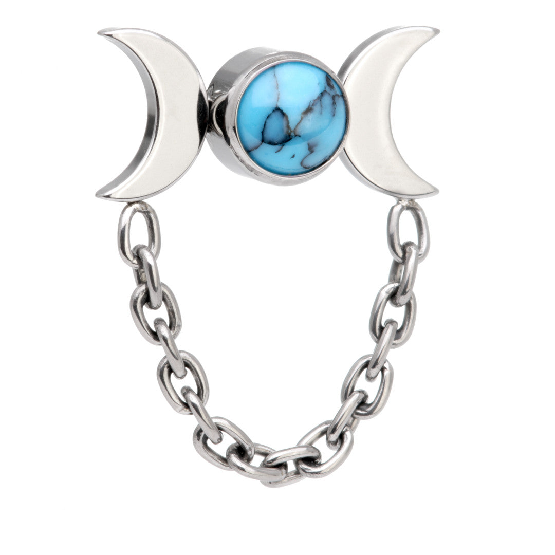 Ti Internal Turquoise Bezel with Double Moon Crescent Attachment Gauge: 1.2mm (0.9mm Gauge) Attachment Size: 3mm x 9.7mm Stone Colour: Turquoise Medical Grade Titanium 6Al-4VEli ASTM:F-136