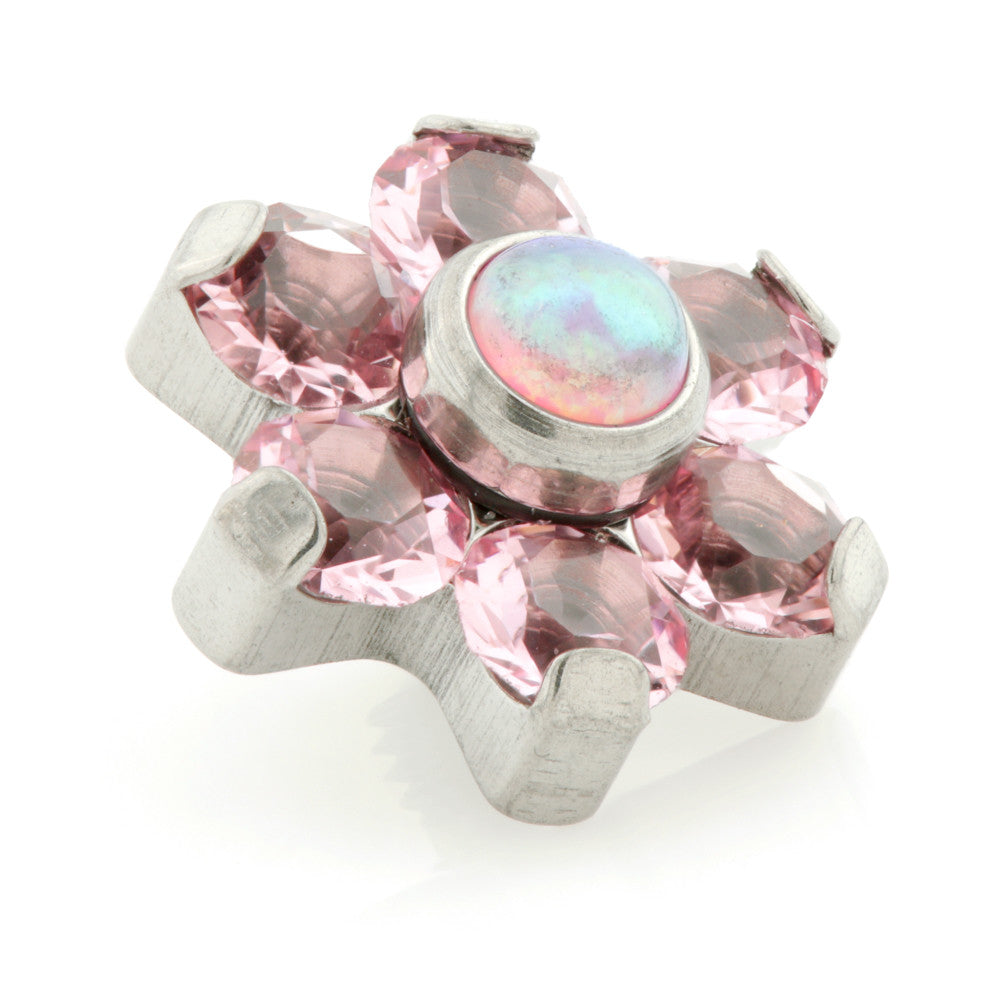 Internal Thread 6 Petal Opal Gem Flower Size: 6.7mm Thread 1.2mm for 1.6mm Gauge Jewellery Pink Opal Centre Light Rose Gem Petals Titanium Colours Available Medical Grade Titanium 6Al-4VEli ASTM:F-136