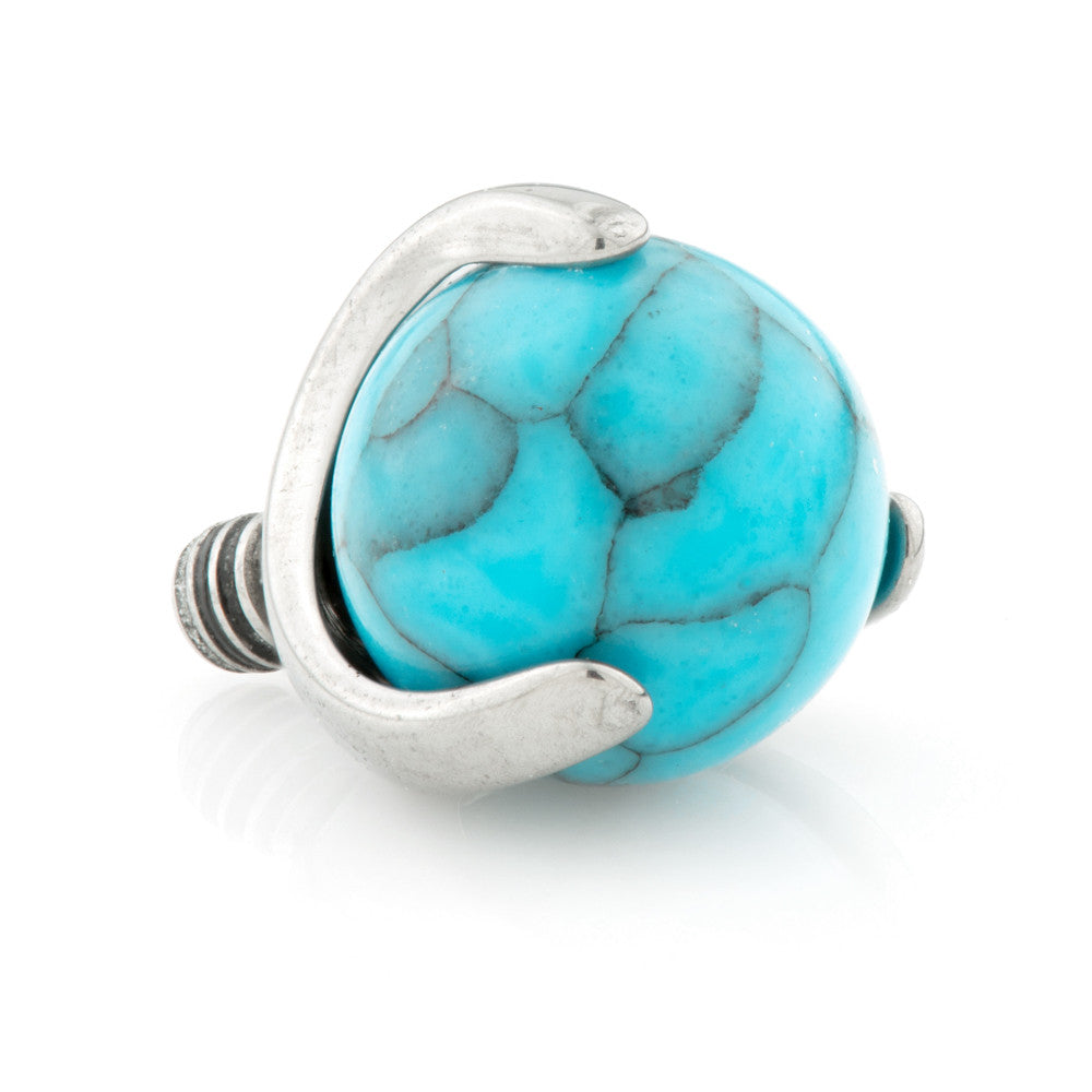 Titanium Turquoise Prong Set Ball Attachment Gauge: 1.6mm Size: 4mm Medical Grade Titanium 6Al-4VEli ASTM:F-136