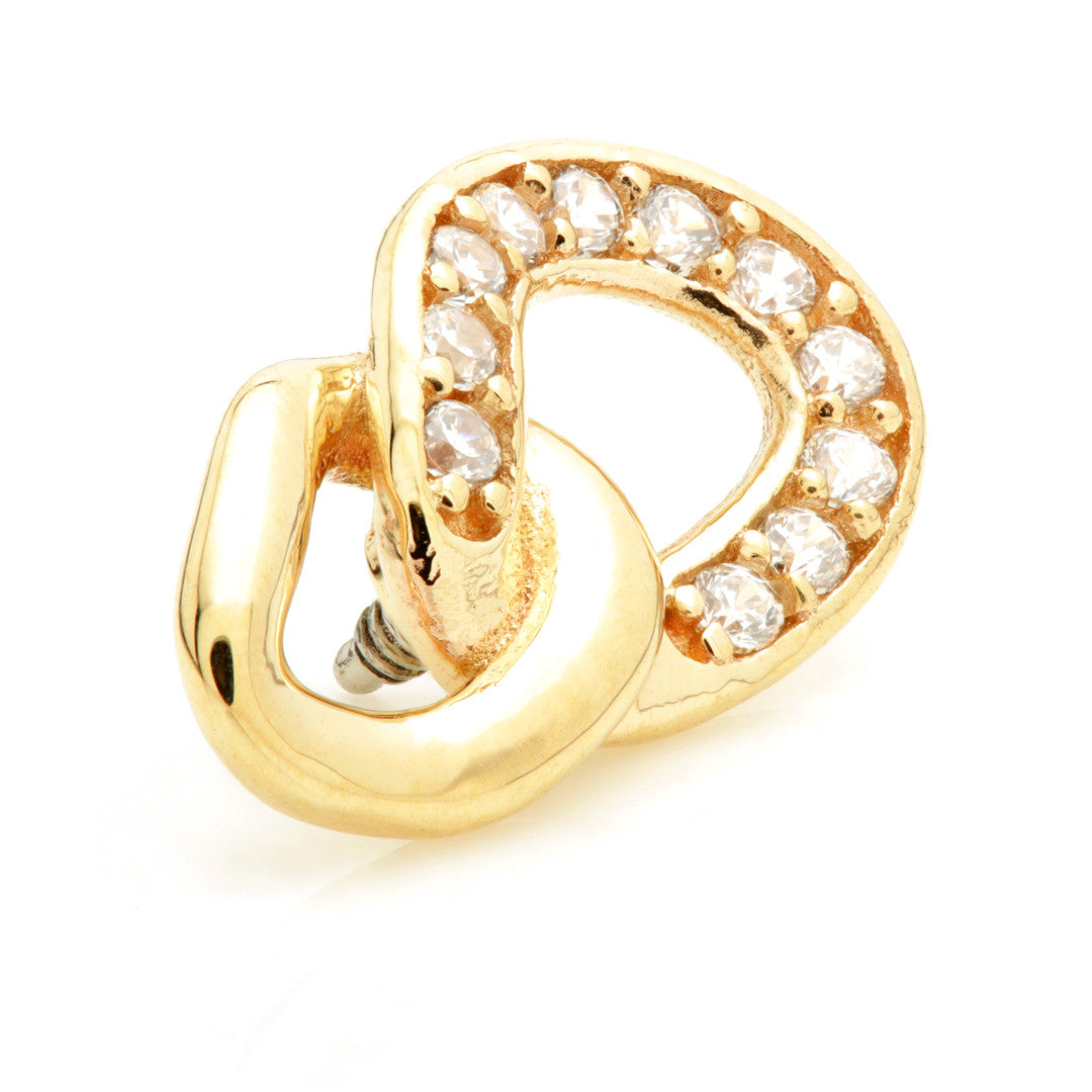 <p>TISH LYON® 14ct Internal Gold Half Pave Double Chain Links Attachment</p> <p>Gauge: 1.2mm (0.9mm thread) Size: 10mm x 6mm Gold Colour: Yellow Gem Colour: CR CZ Gem Stones</p> <p>Packaged in small grey presentation box/card Suitable for initial piercing</p>