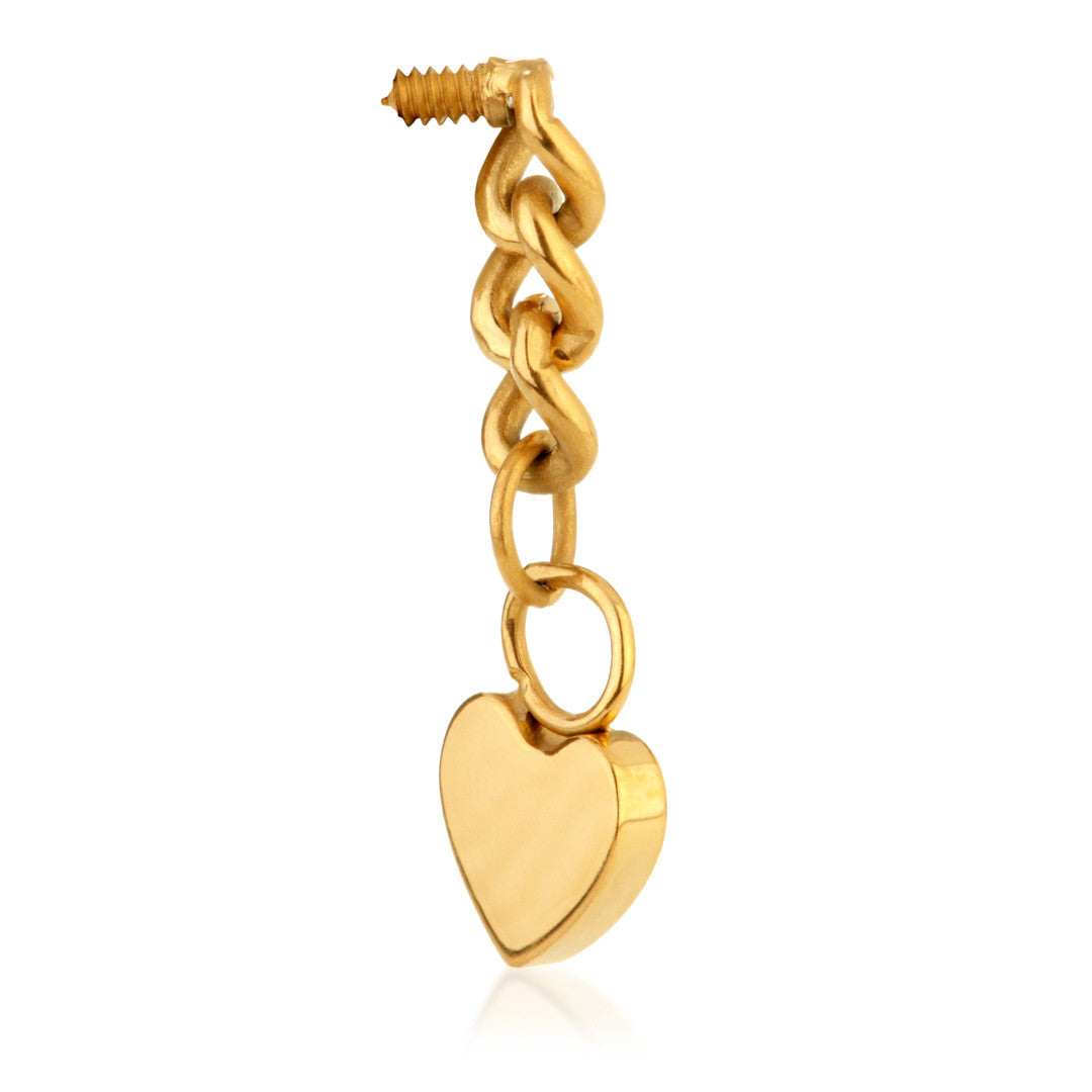 Zircon Gold Ti Internal Hanging Heart Attachment Gauge: 1.2mm (0.9mm thread) Chain Length: 7mm Heart Attachment Size: 4mm Medical Grade Titanium 6Al-4VEli ASTM:F-136