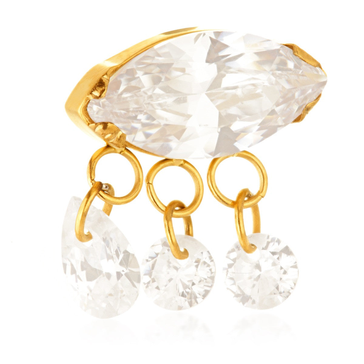 Zircon Gold Titanium Internal Jewelled Marquise with Hanging Charms Attachment Gauge: 1.2mm (0.9mm thread) Attachment Size: 5mm x 11mm Gem Colour: CR CZ Gem Stones Medical Grade Titanium 6Al-4VEli ASTM:F-136
