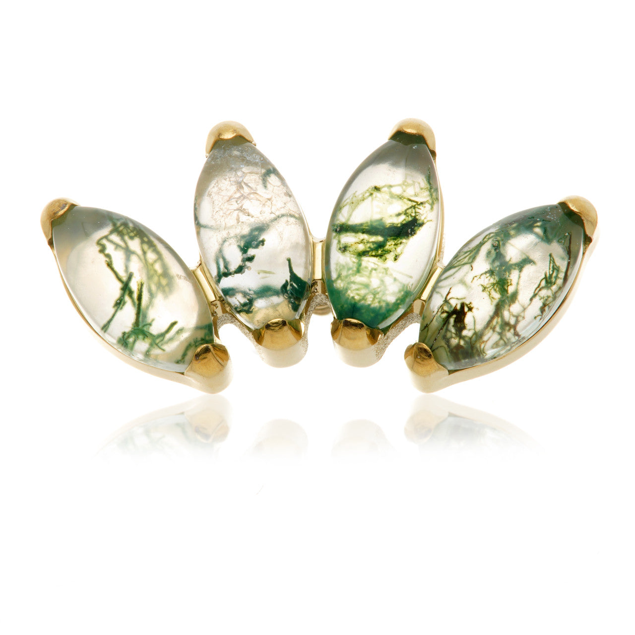 Zircon Gold Ti Internal Moss Agate Marquise Gem Cluster Attachment Gauge: 1.2mm (0.9mm thread)Stone Colour: Moss Agate Medical Grade Titanium 6Al-4VEli ASTM:F-136