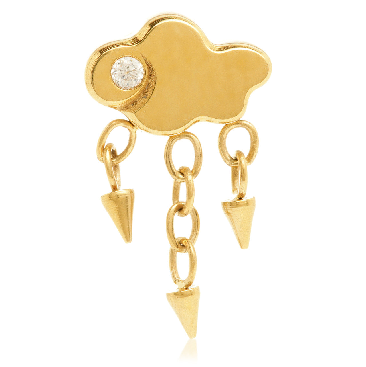 Zircon Gold Ti Internal Raincloud Attachment with Hanging Cones Gauge: 1.2mm (0.9mm Thread) Attachment Size: 5*9mm Gem Colour: Crystal CZ Gem Stones Medical Grade Titanium 6Al-4VEli ASTM:F-136
