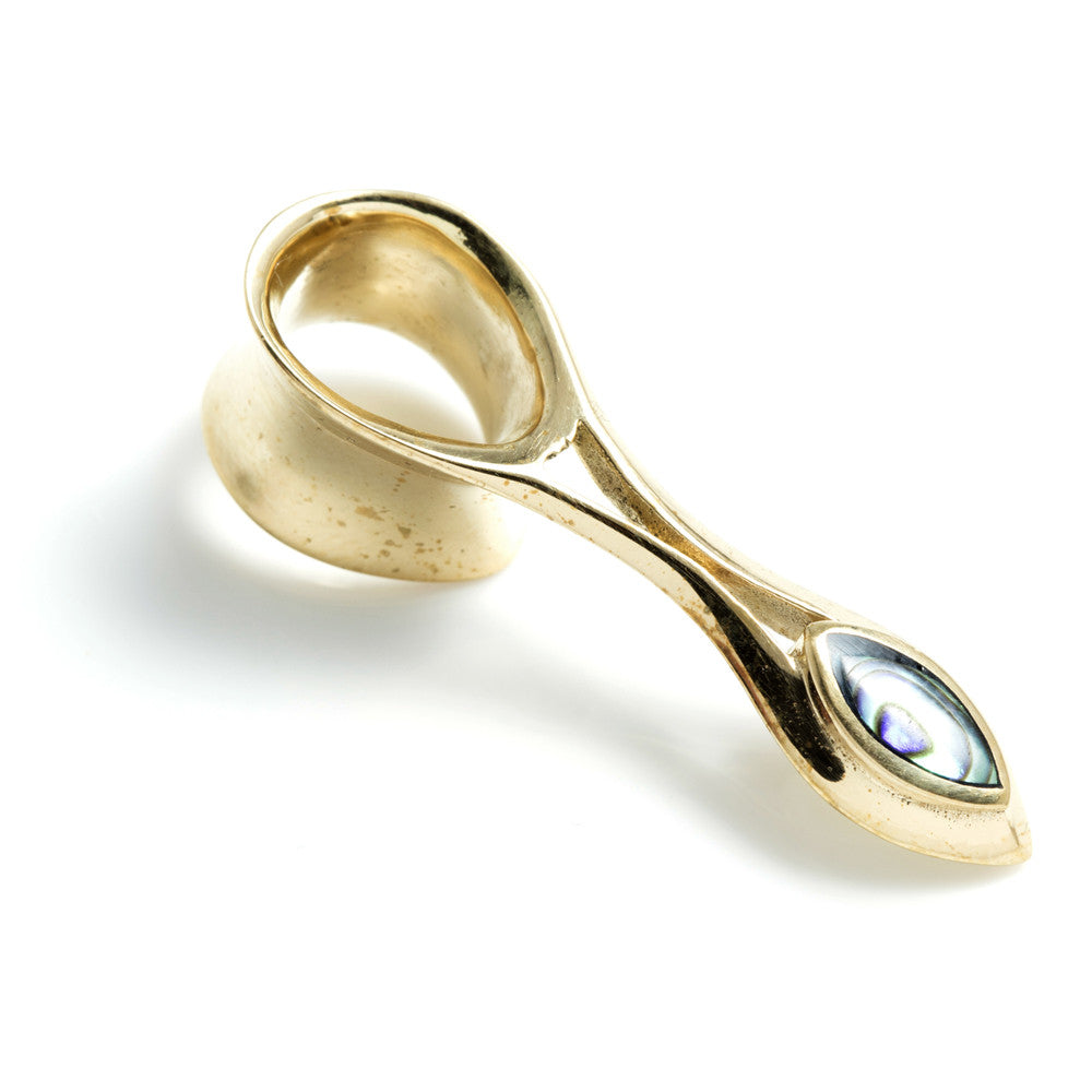 Brass Abalone Shell Drop Flared Tunnel Sizes: 8mm / 10mm / 12mm Brass is Nickel Free, Lead Free and Cadmium Free Only to be worn in healed piercings