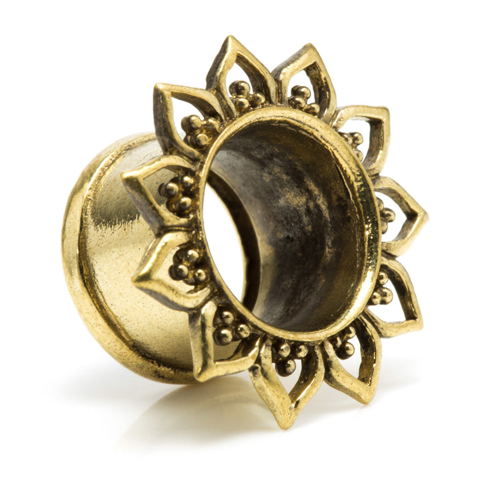 Brass Lotus Flared Tunnel Sizes: 3mm/ 4mm / 5mm / 6mm / 8mm / 10mm / 12mm / 14mm / 16mm / 18mm Brass is Nickel Free, Lead Free and Cadmium Free Only to be worn in healed piercings