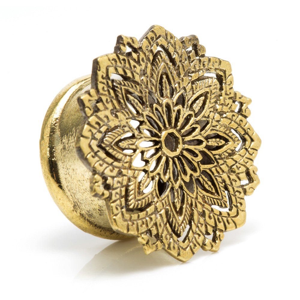 Brass Mandala Flared Tunnel Sizes: 3mm / 4mm / 5mm / 6mm / 8mm / 10mm / 12mm / 14mm / 16mm / 18mm Brass is Nickel Free, Lead Free and Cadmium Free Only to be worn in healed piercings