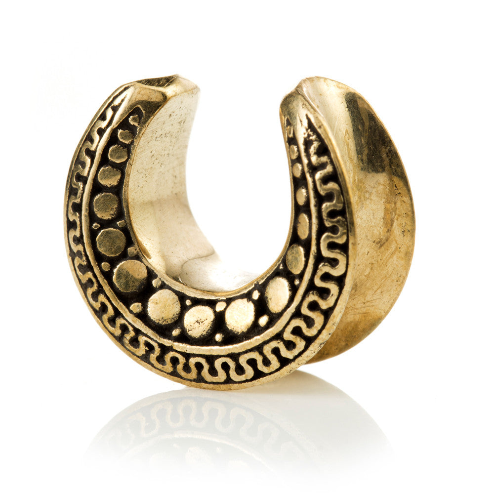 Brass Patterned Saddle Plug Only to be worn in healed piercings Brass is Nickel Free, Lead Free and Cadmium Free